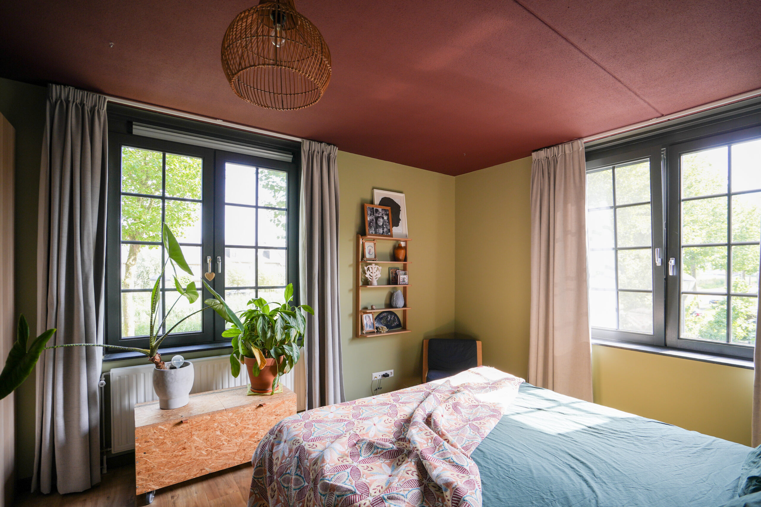 Op zoek naar een moderne, gezellige en huiselijke locatie? In het dijkdorp Waddinxveen, gelegen in een woonwijk, vind je dit lichte, eigentijdse maar bovenal kleurrijke woonhuis. Beneden loopt de betonnen vloer in zijn geheel door en worden moderne elementen afgewisseld met houten accenten, comfortabele meubels en kleurrijke accessoires. Deze kenmerkende combinatie vind je ook terug in de slaapkamer waar de kleur je tegemoet komt!