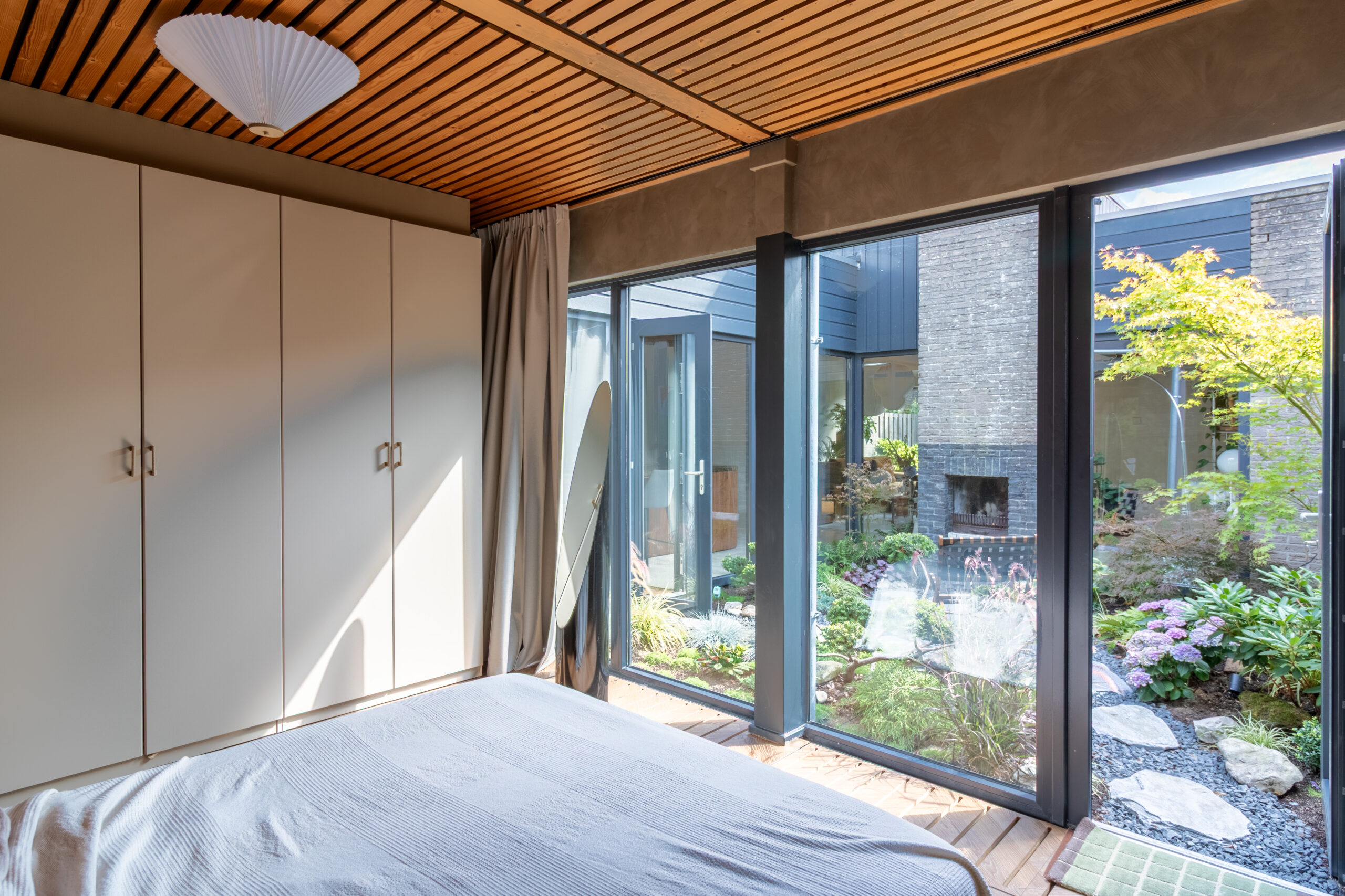 Mid-century Bungalow Amsterdam is een volledig gelijkvloerse bungalowwoning die in de jaren 70 gebouwd is. De eigenaren hebben deze parel in 2024 volledig gerenoveerd. De locatie heeft een mid-century moderne interieur stijl, een mix van vintage en modern. Een unieke eye-catcher is hier de Japanse binnentuin inclusief bonsai bomen en een functionerende buiten openhaard.