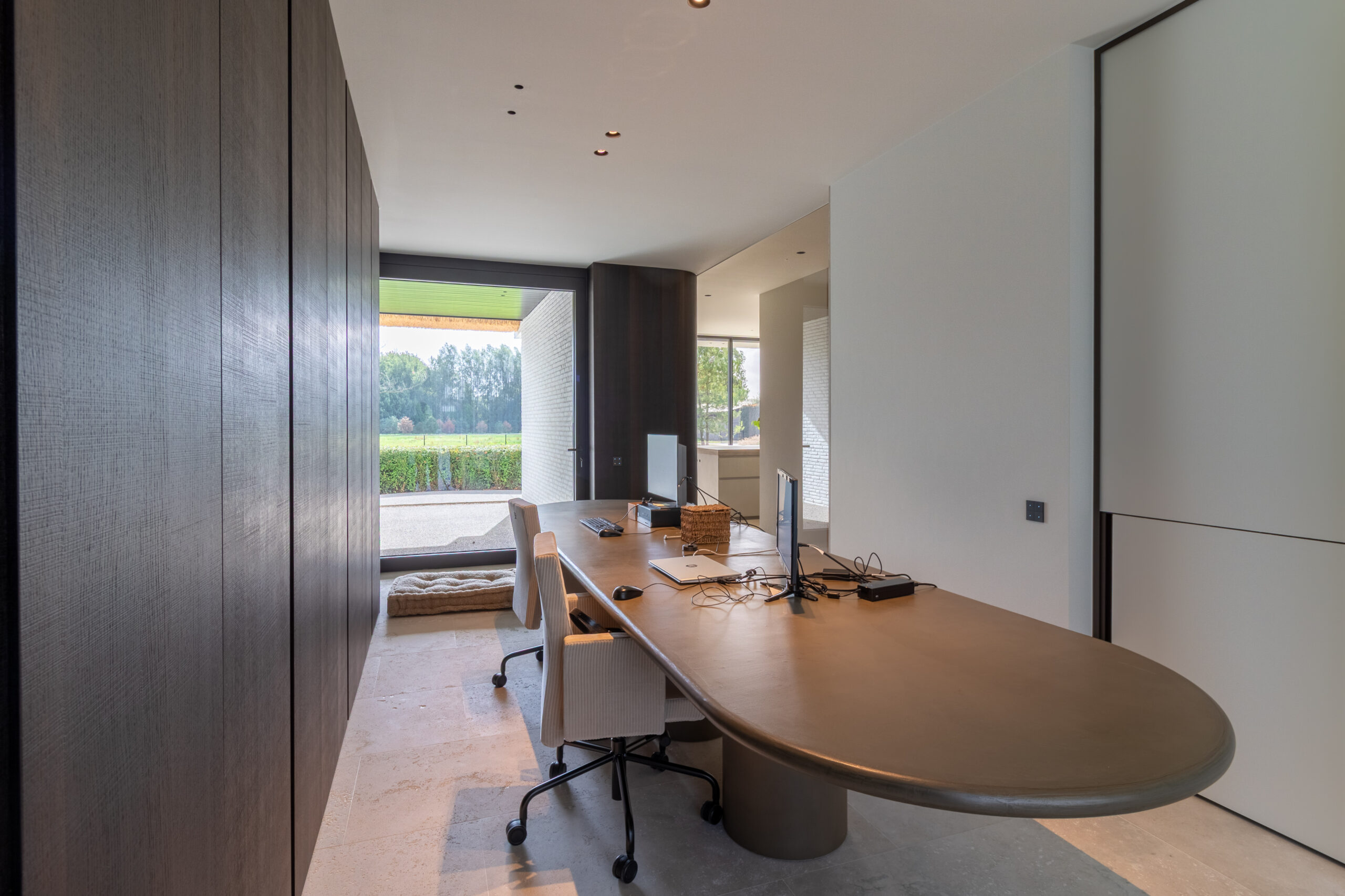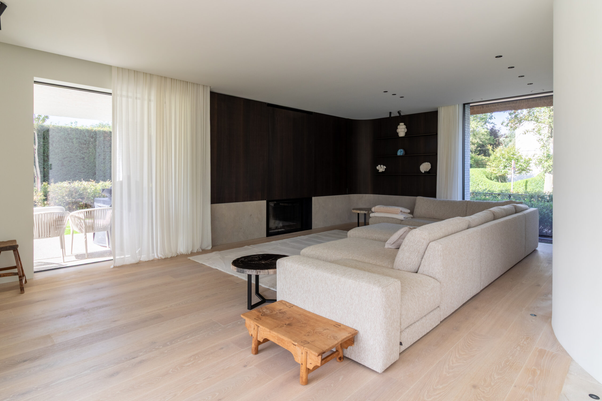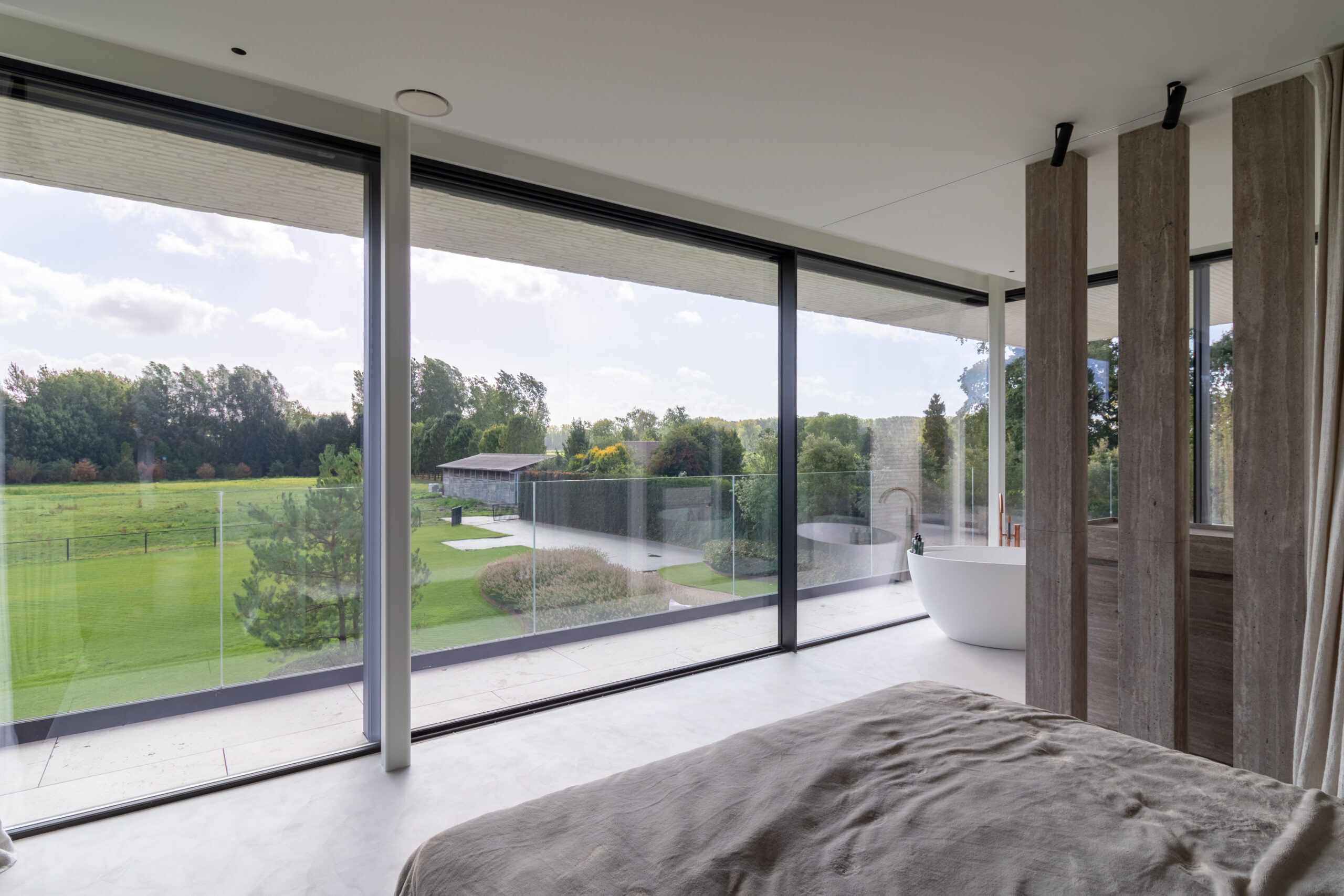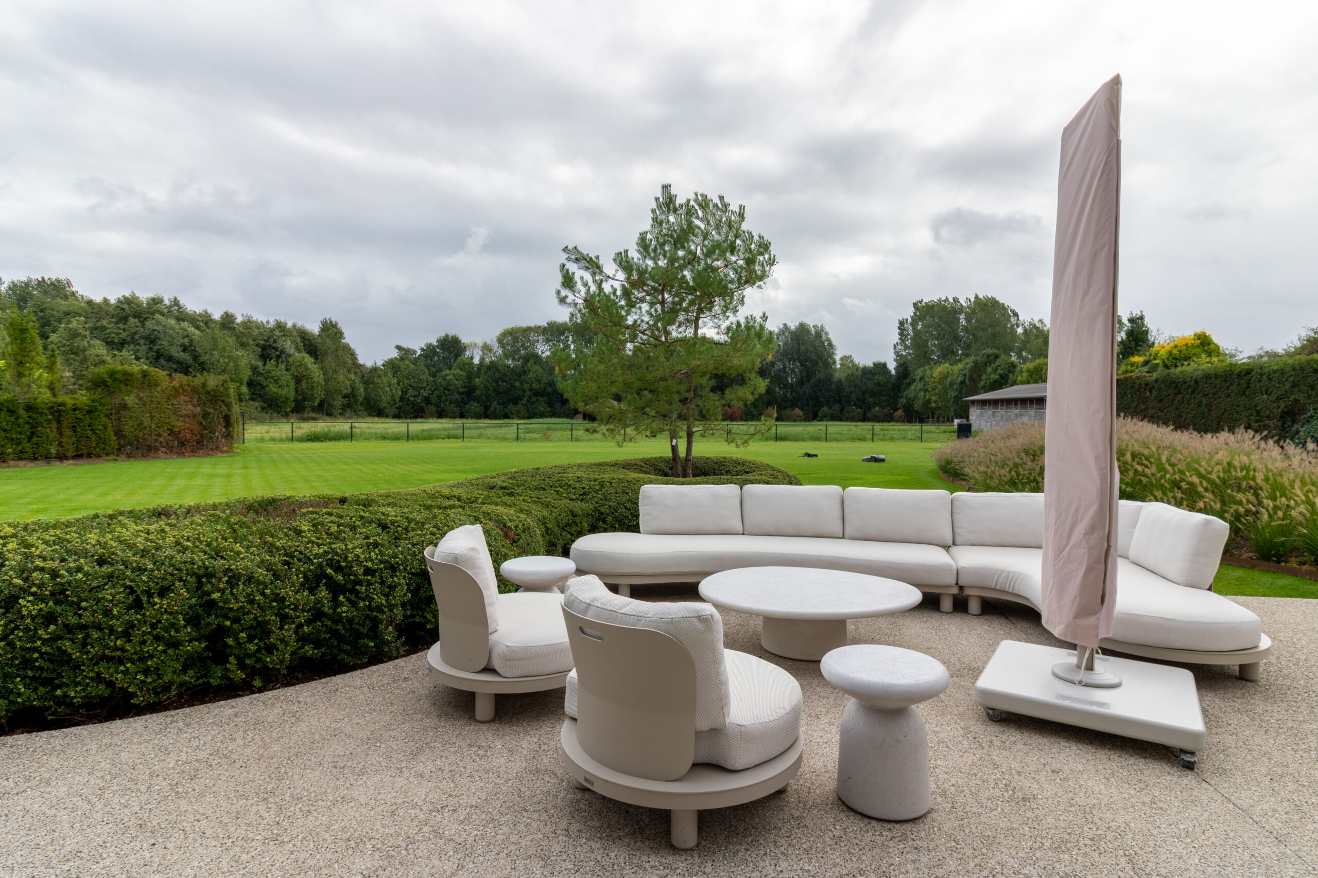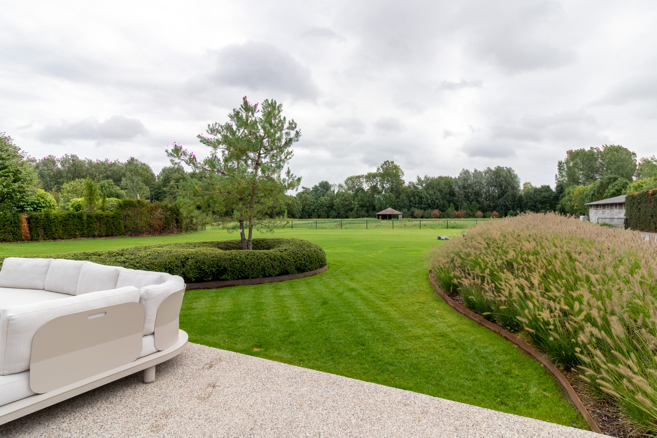 Moderne Villa Hoogstraten is een moderne parel. Het voorgaande huis is met de grond gelijk gemaakt waarna dit moderne stuk architectuur is opgebouwd. Samen met een architect is hier een villa gebouwd waar je U tegen zegt. Het huis is modern en industrieel maar voelt tegelijk warm en huiselijk. Dat komt omdat er door het gehele huis alleen is gewerkt met natuurlijke kleuren en accenten en muren zijn afgewerkt met ronde vormen. Een mooi detail is het natuursteen wat overal door het huis terug komt, in de keuken, de hal, de slaapkamer en de badkamer. Buiten beschik je over 2 hectare grond, een nieuw aangelegde tuin met daarachter een groot stuk weiland omringd door bomen. Dat maakt het toch helemaal af.