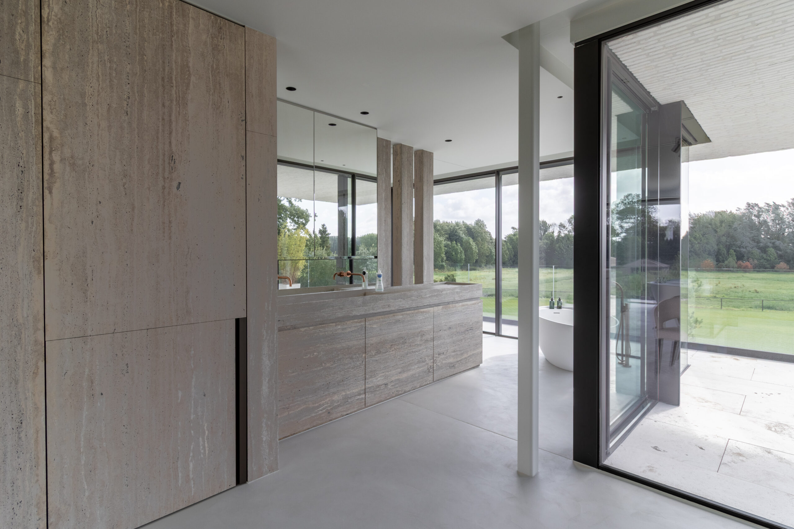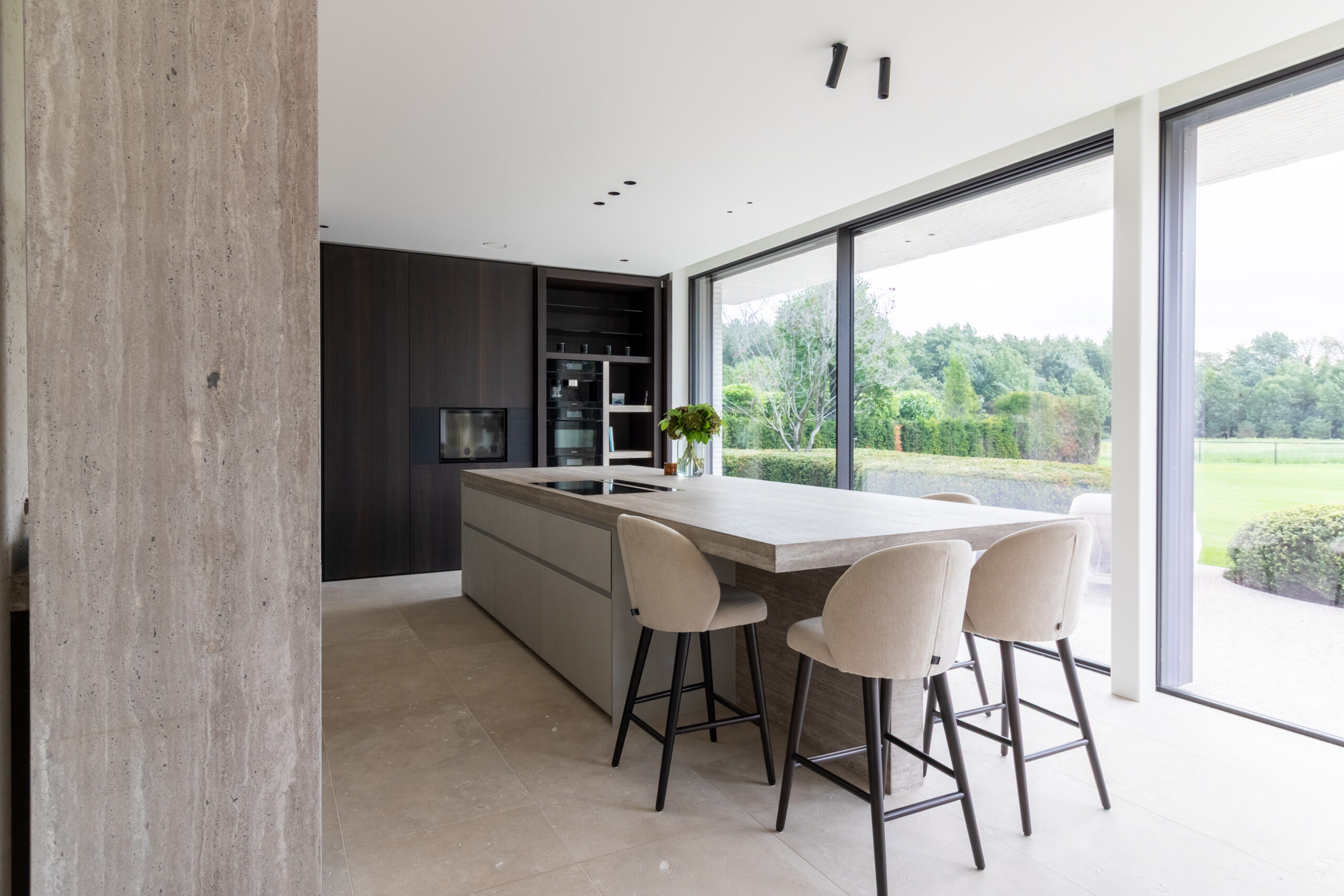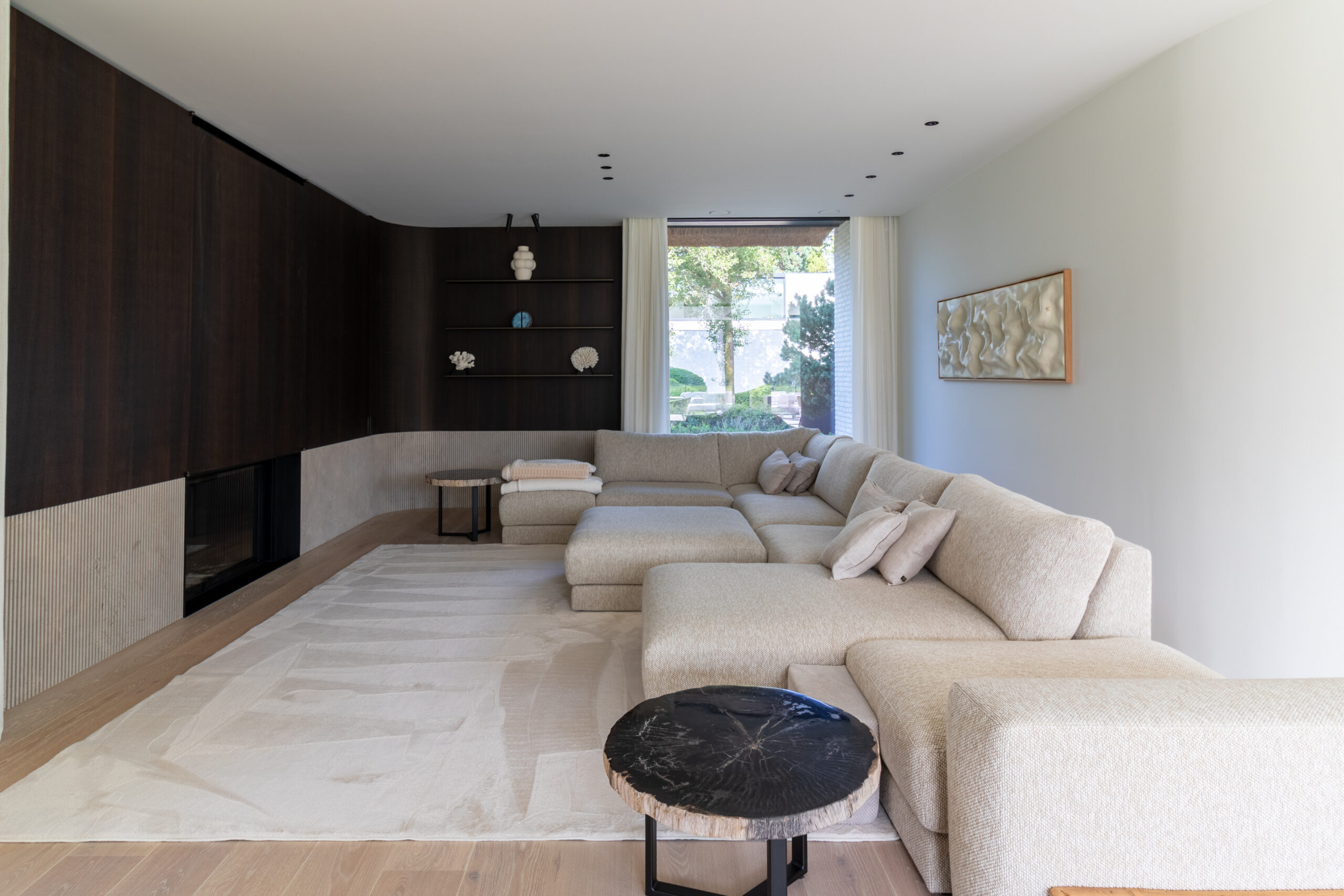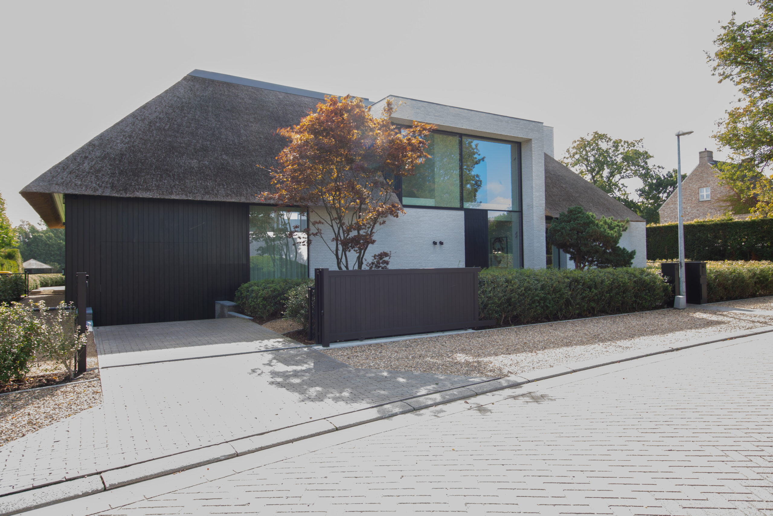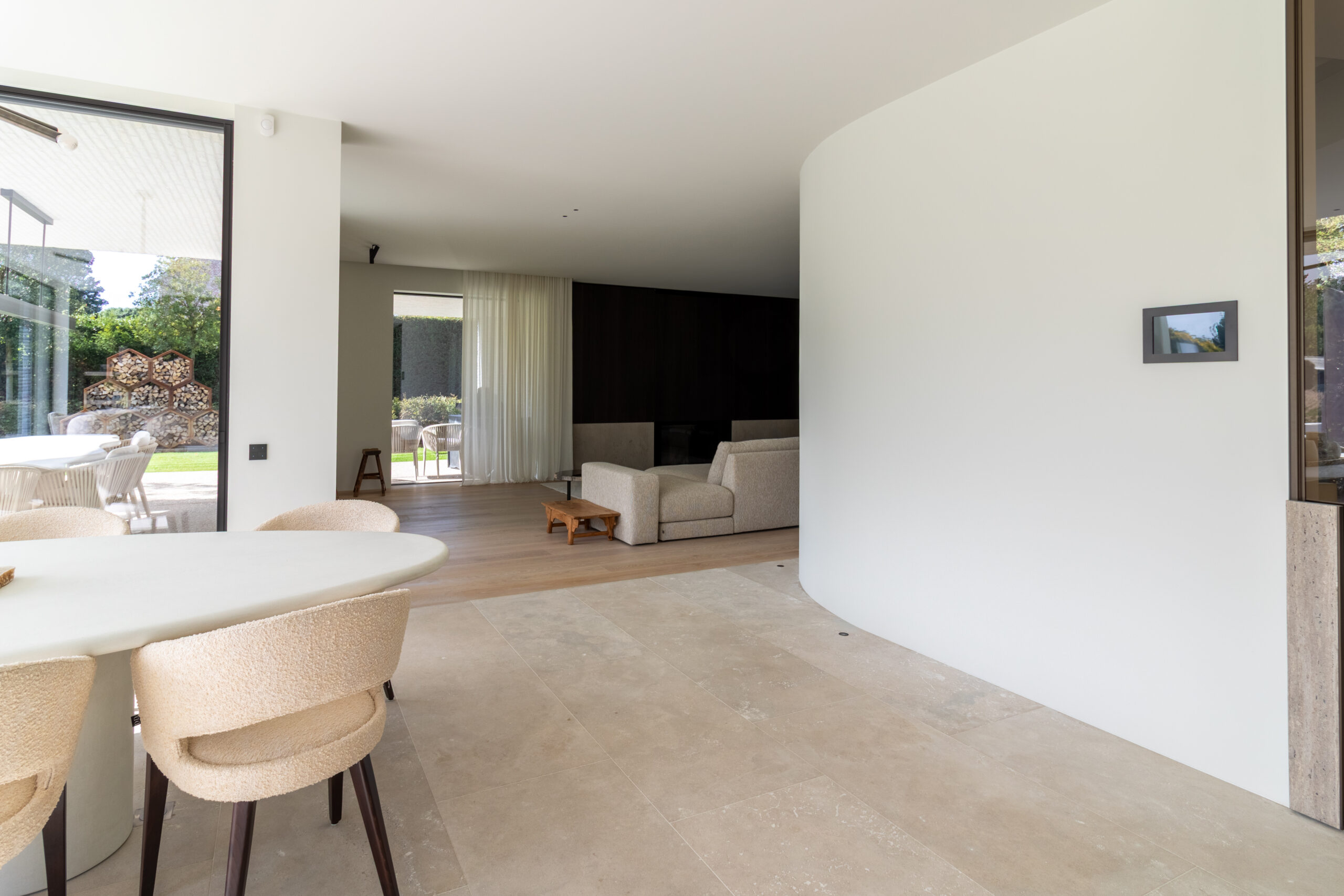 Moderne Villa Hoogstraten is een moderne parel. Het voorgaande huis is met de grond gelijk gemaakt waarna dit moderne stuk architectuur is opgebouwd. Samen met een architect is hier een villa gebouwd waar je U tegen zegt. Het huis is modern en industrieel maar voelt tegelijk warm en huiselijk. Dat komt omdat er door het gehele huis alleen is gewerkt met natuurlijke kleuren en accenten en muren zijn afgewerkt met ronde vormen. Een mooi detail is het natuursteen wat overal door het huis terug komt, in de keuken, de hal, de slaapkamer en de badkamer. Buiten beschik je over 2 hectare grond, een nieuw aangelegde tuin met daarachter een groot stuk weiland omringd door bomen. Dat maakt het toch helemaal af.