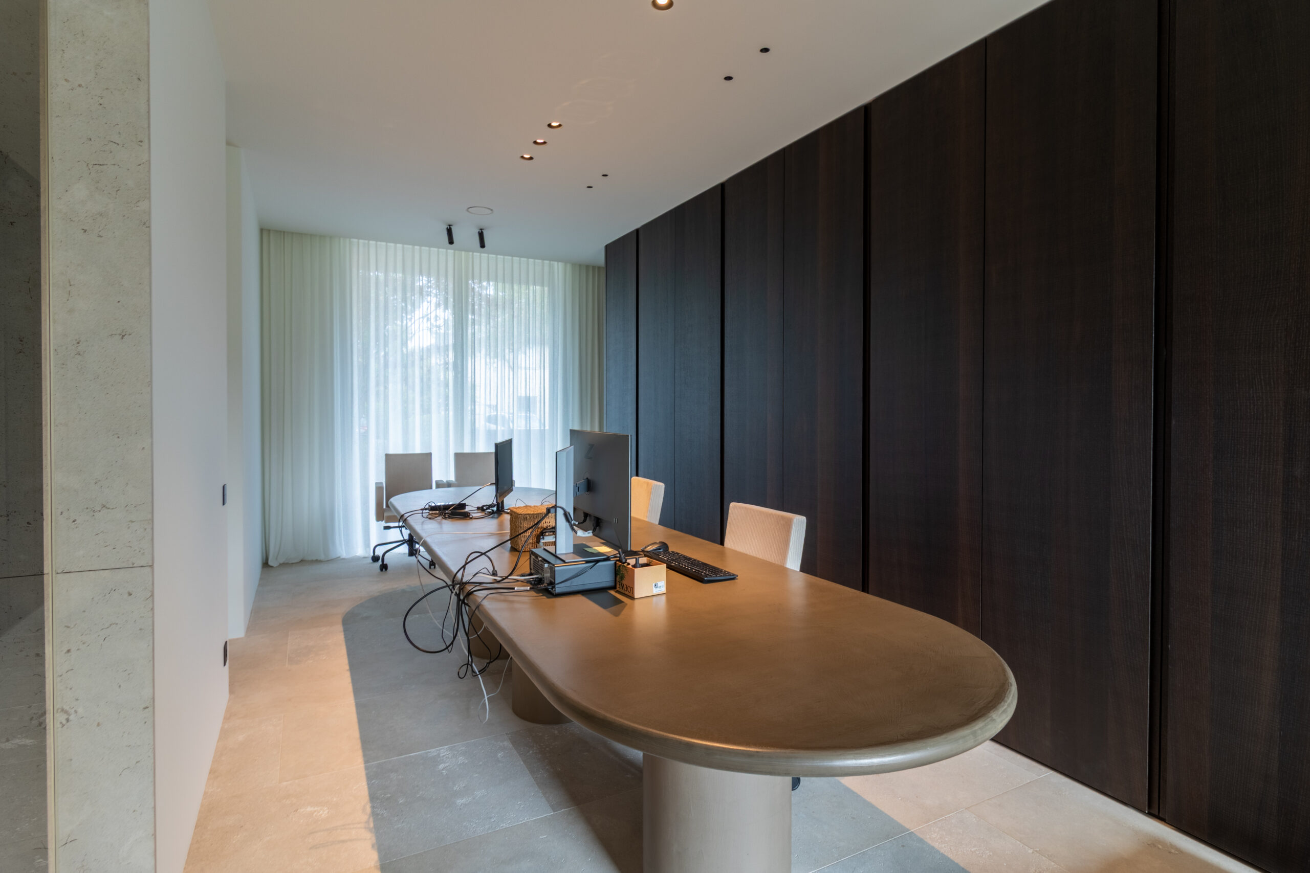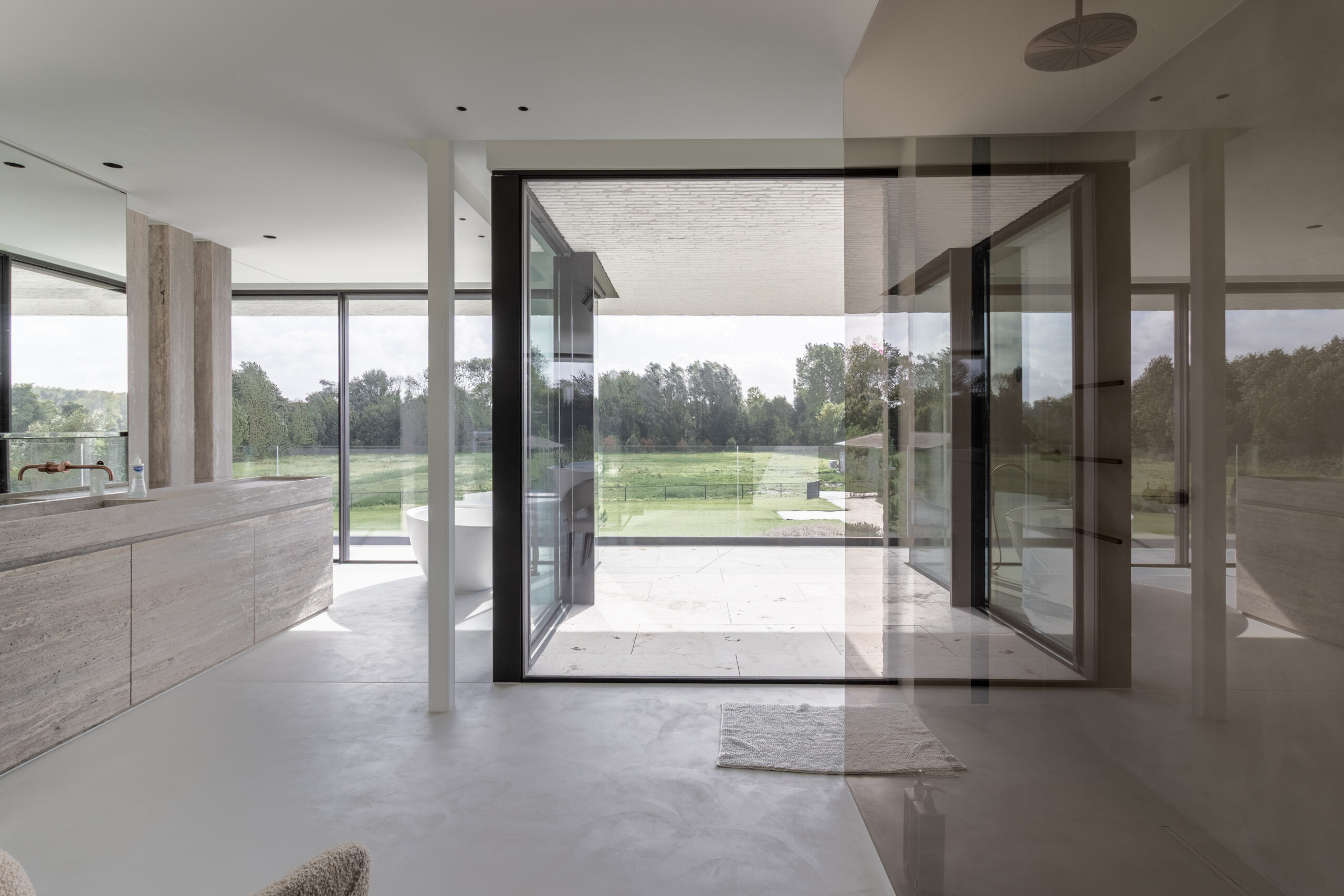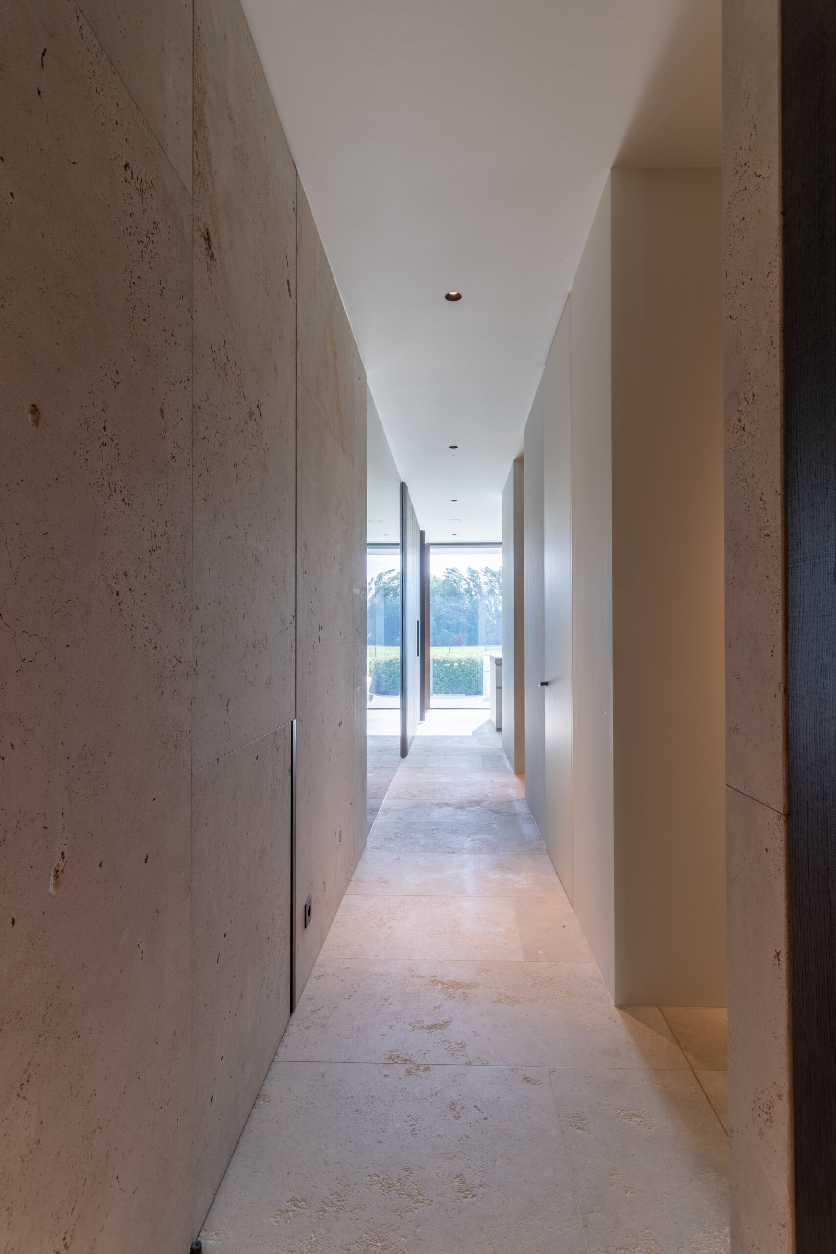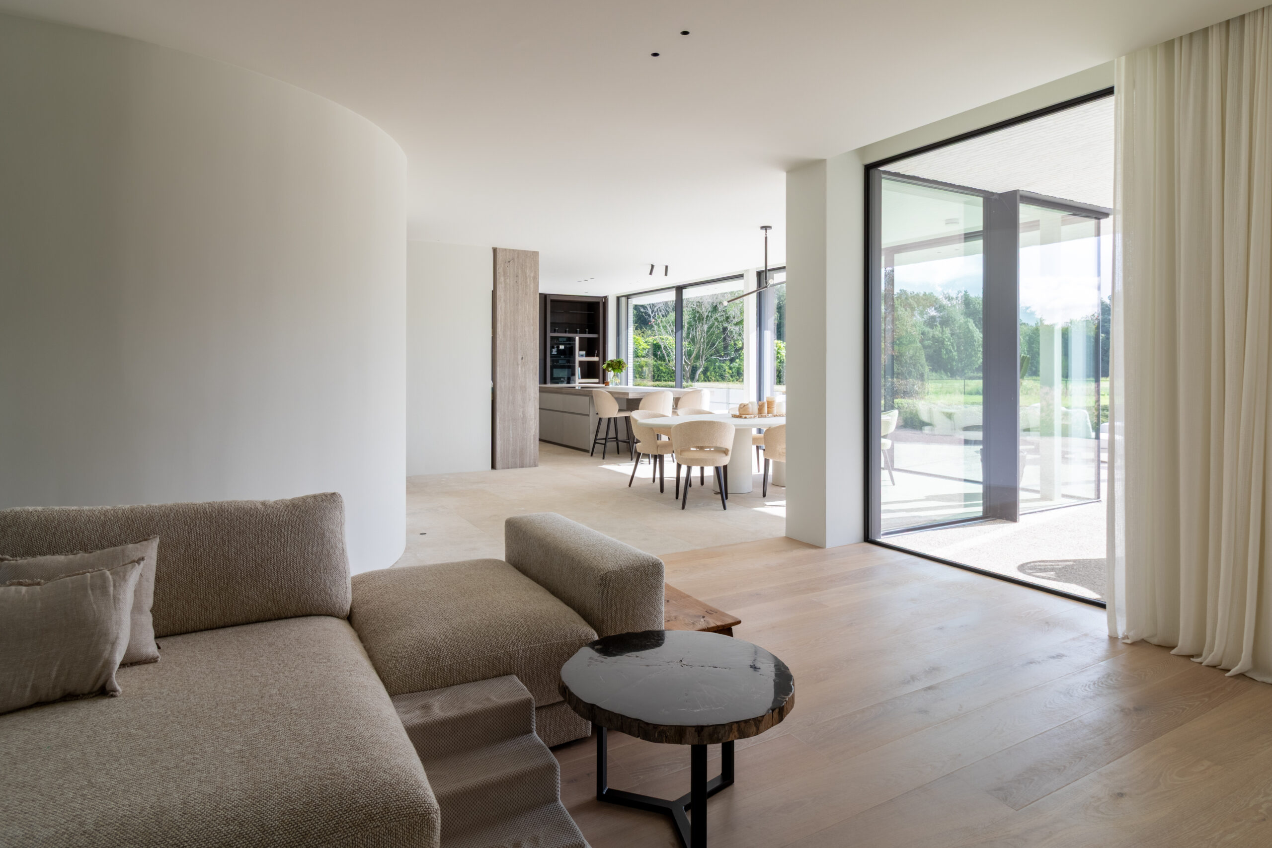 Moderne Villa Hoogstraten is een moderne parel. Het voorgaande huis is met de grond gelijk gemaakt waarna dit moderne stuk architectuur is opgebouwd. Samen met een architect is hier een villa gebouwd waar je U tegen zegt. Het huis is modern en industrieel maar voelt tegelijk warm en huiselijk. Dat komt omdat er door het gehele huis alleen is gewerkt met natuurlijke kleuren en accenten en muren zijn afgewerkt met ronde vormen. Een mooi detail is het natuursteen wat overal door het huis terug komt, in de keuken, de hal, de slaapkamer en de badkamer. Buiten beschik je over 2 hectare grond, een nieuw aangelegde tuin met daarachter een groot stuk weiland omringd door bomen. Dat maakt het toch helemaal af.