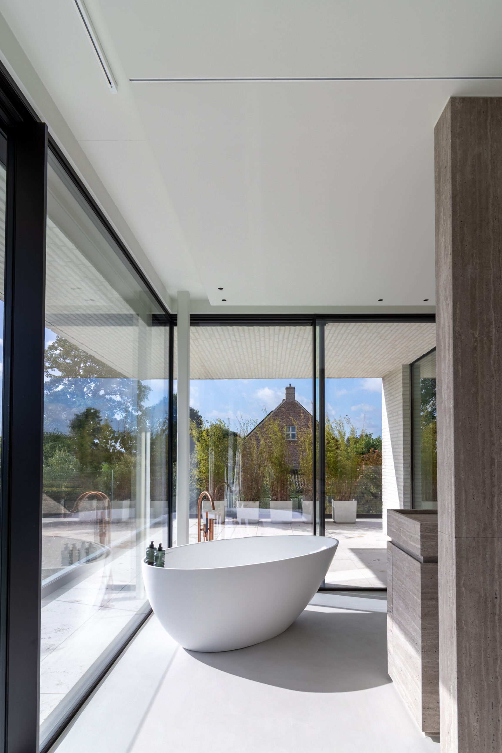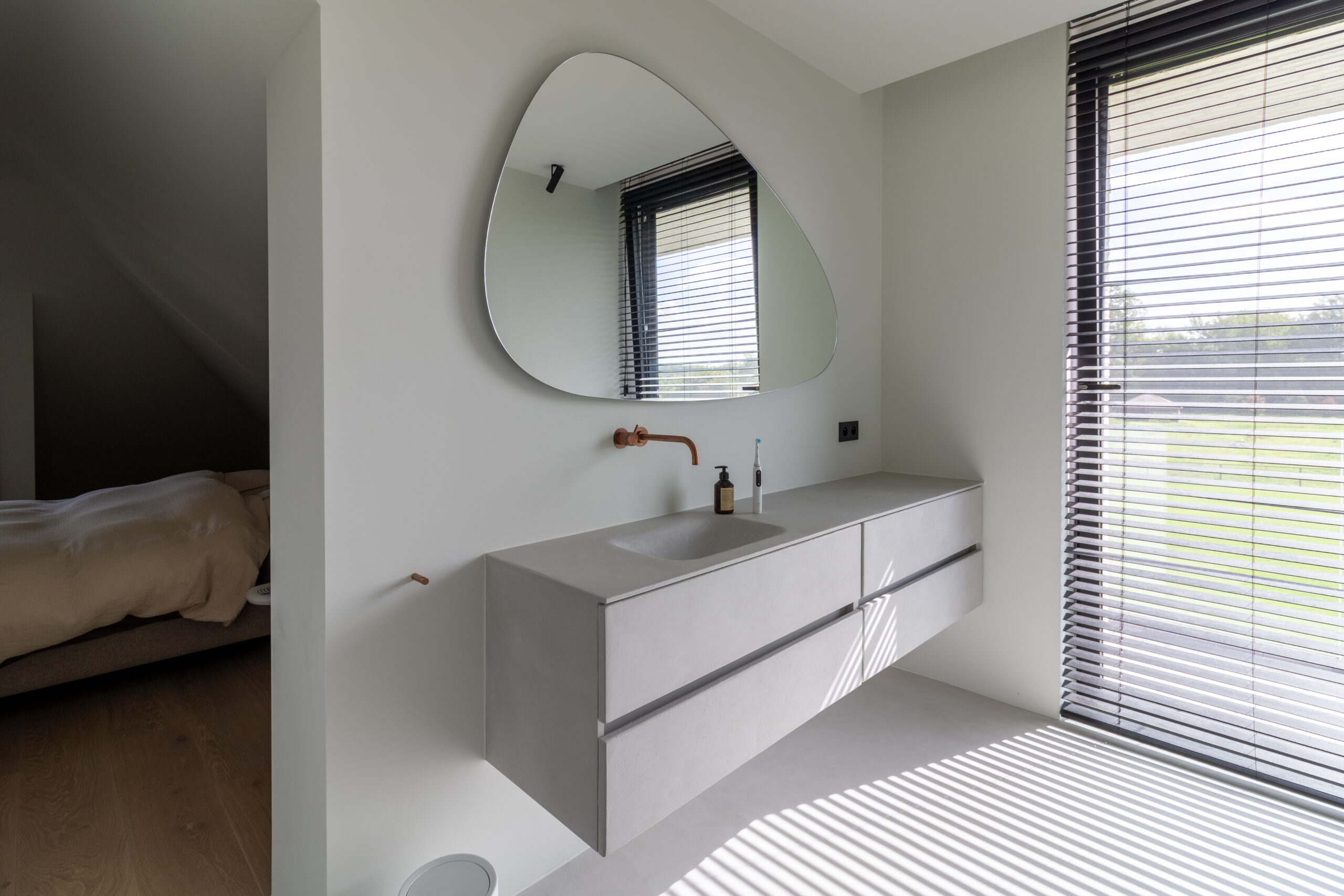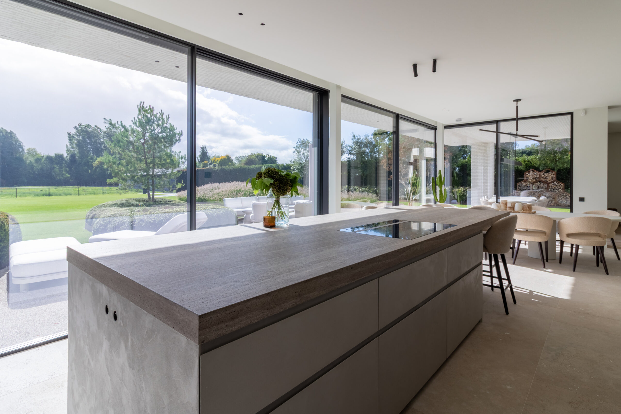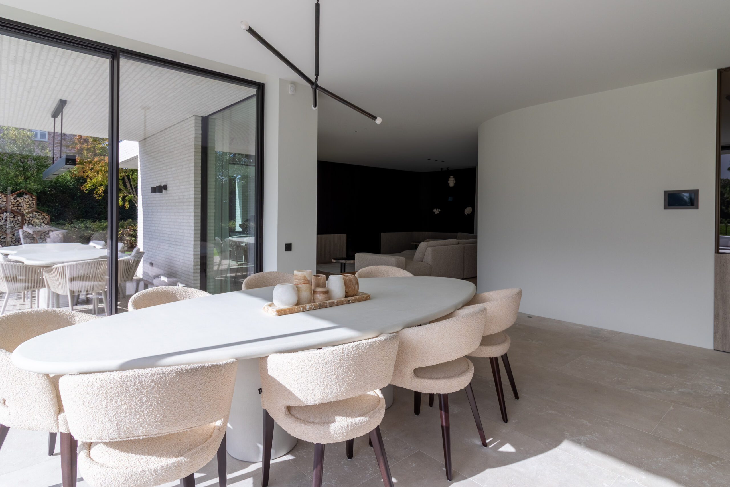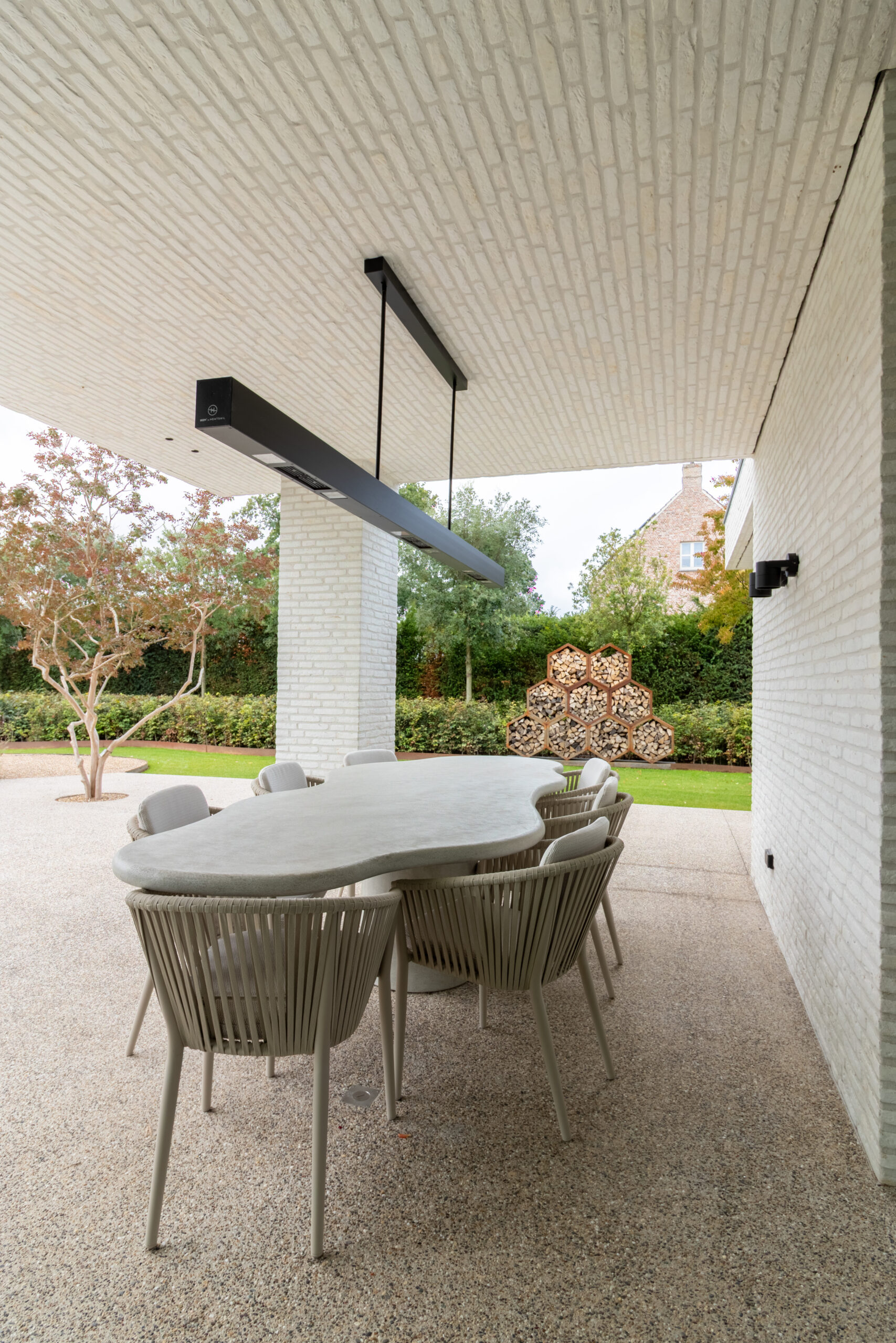 Moderne Villa Hoogstraten is een moderne parel. Het voorgaande huis is met de grond gelijk gemaakt waarna dit moderne stuk architectuur is opgebouwd. Samen met een architect is hier een villa gebouwd waar je U tegen zegt. Het huis is modern en industrieel maar voelt tegelijk warm en huiselijk. Dat komt omdat er door het gehele huis alleen is gewerkt met natuurlijke kleuren en accenten en muren zijn afgewerkt met ronde vormen. Een mooi detail is het natuursteen wat overal door het huis terug komt, in de keuken, de hal, de slaapkamer en de badkamer. Buiten beschik je over 2 hectare grond, een nieuw aangelegde tuin met daarachter een groot stuk weiland omringd door bomen. Dat maakt het toch helemaal af.