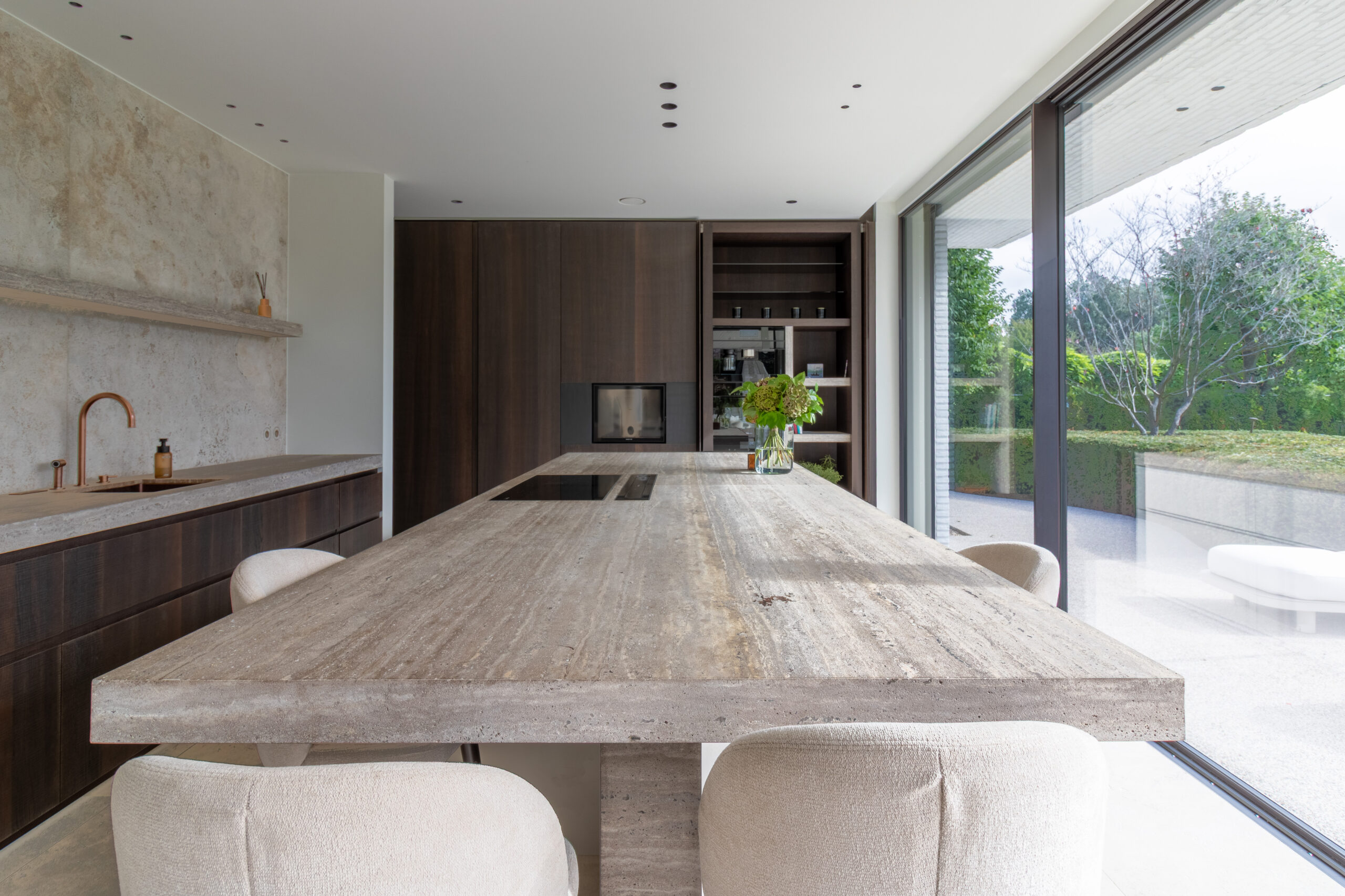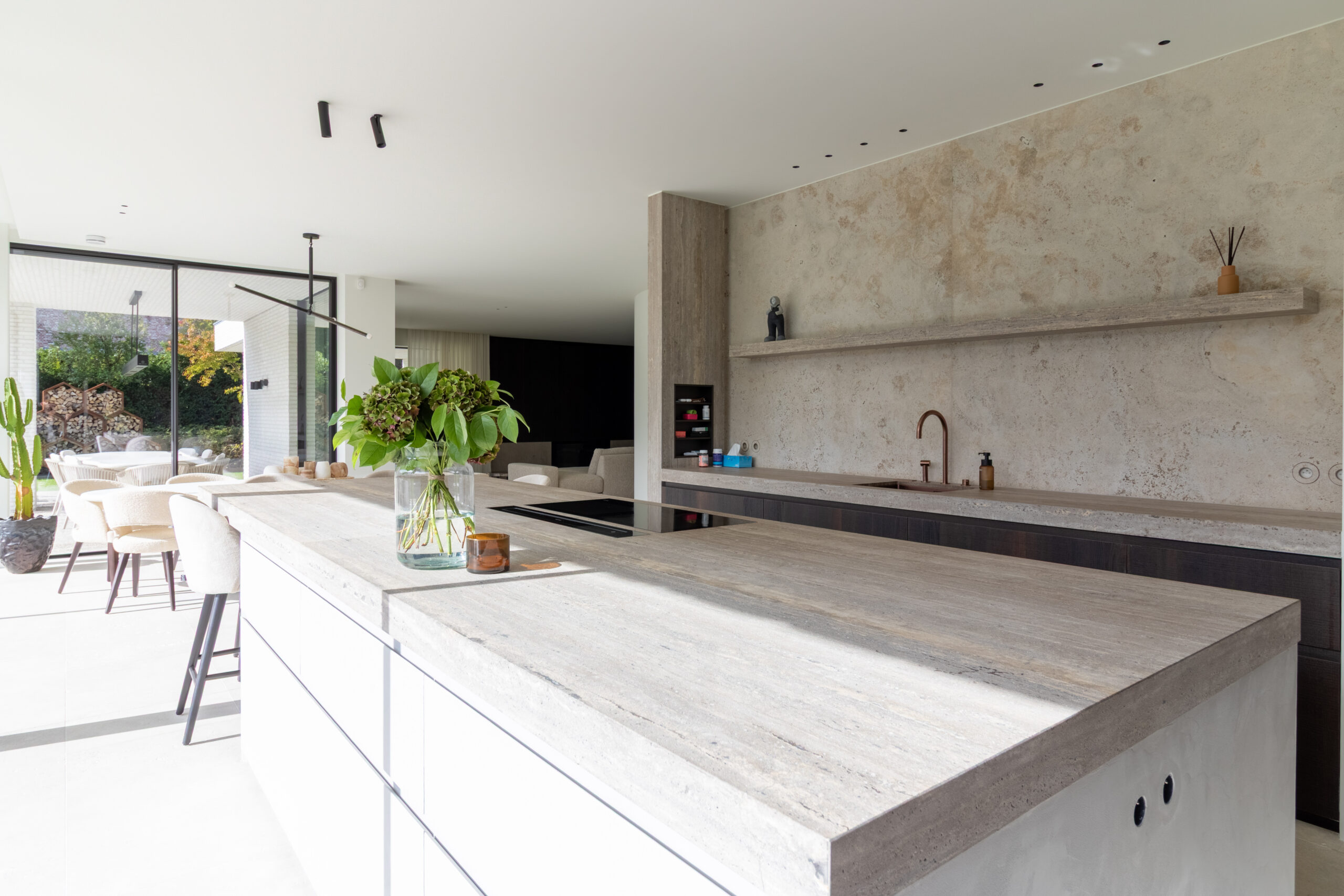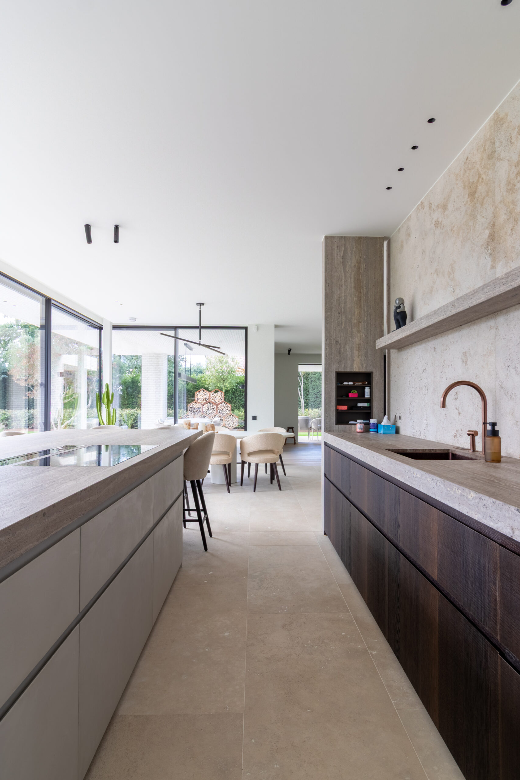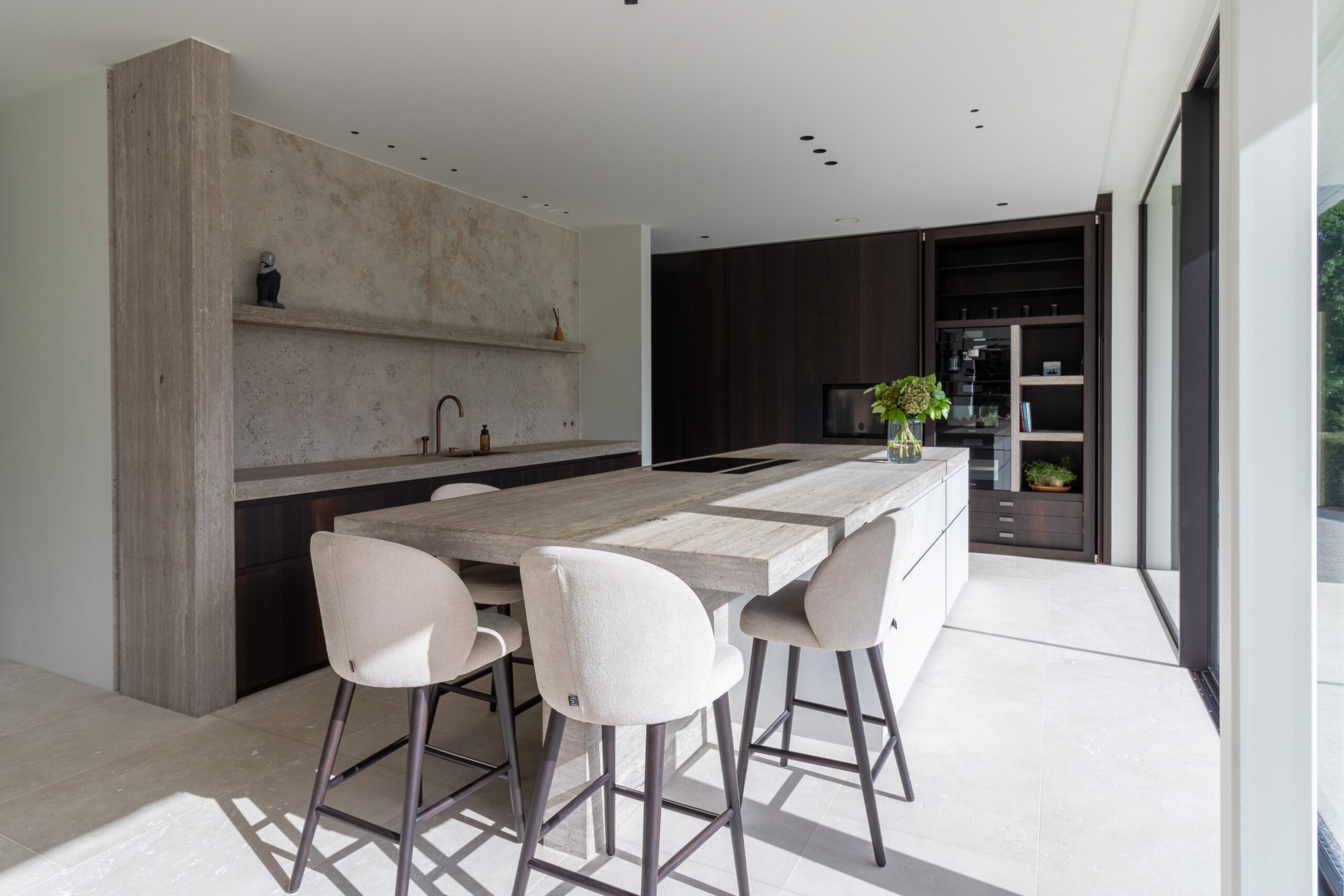 Moderne Villa Hoogstraten is een moderne parel. Het voorgaande huis is met de grond gelijk gemaakt waarna dit moderne stuk architectuur is opgebouwd. Samen met een architect is hier een villa gebouwd waar je U tegen zegt. Het huis is modern en industrieel maar voelt tegelijk warm en huiselijk. Dat komt omdat er door het gehele huis alleen is gewerkt met natuurlijke kleuren en accenten en muren zijn afgewerkt met ronde vormen. Een mooi detail is het natuursteen wat overal door het huis terug komt, in de keuken, de hal, de slaapkamer en de badkamer. Buiten beschik je over 2 hectare grond, een nieuw aangelegde tuin met daarachter een groot stuk weiland omringd door bomen. Dat maakt het toch helemaal af.