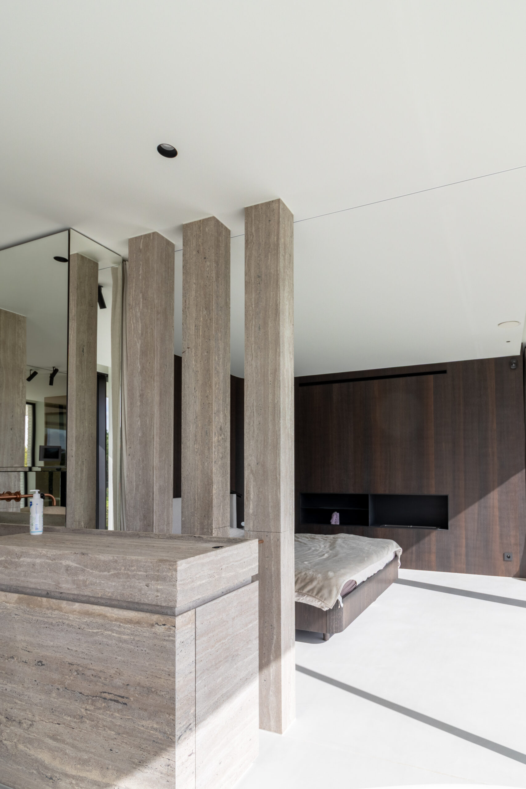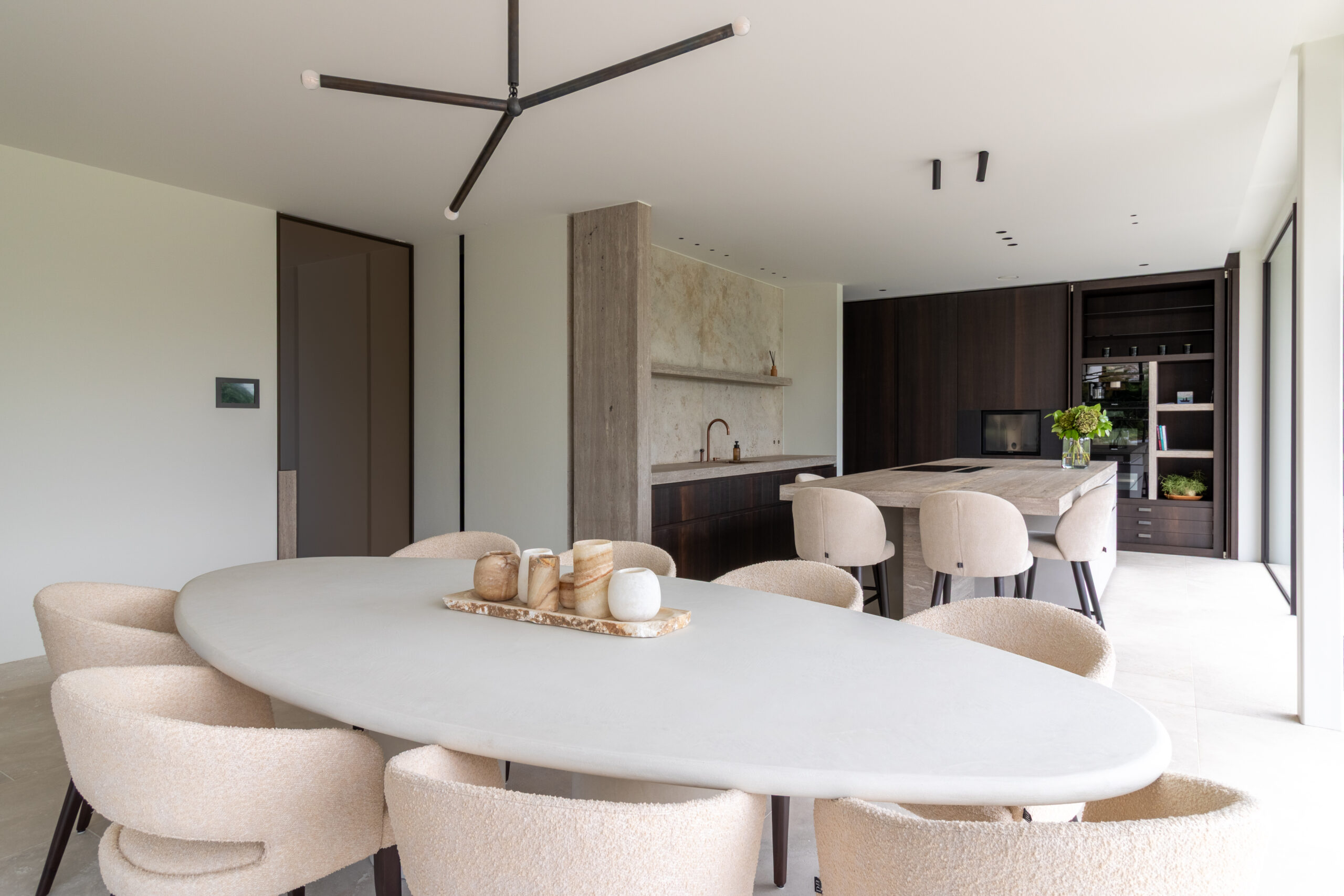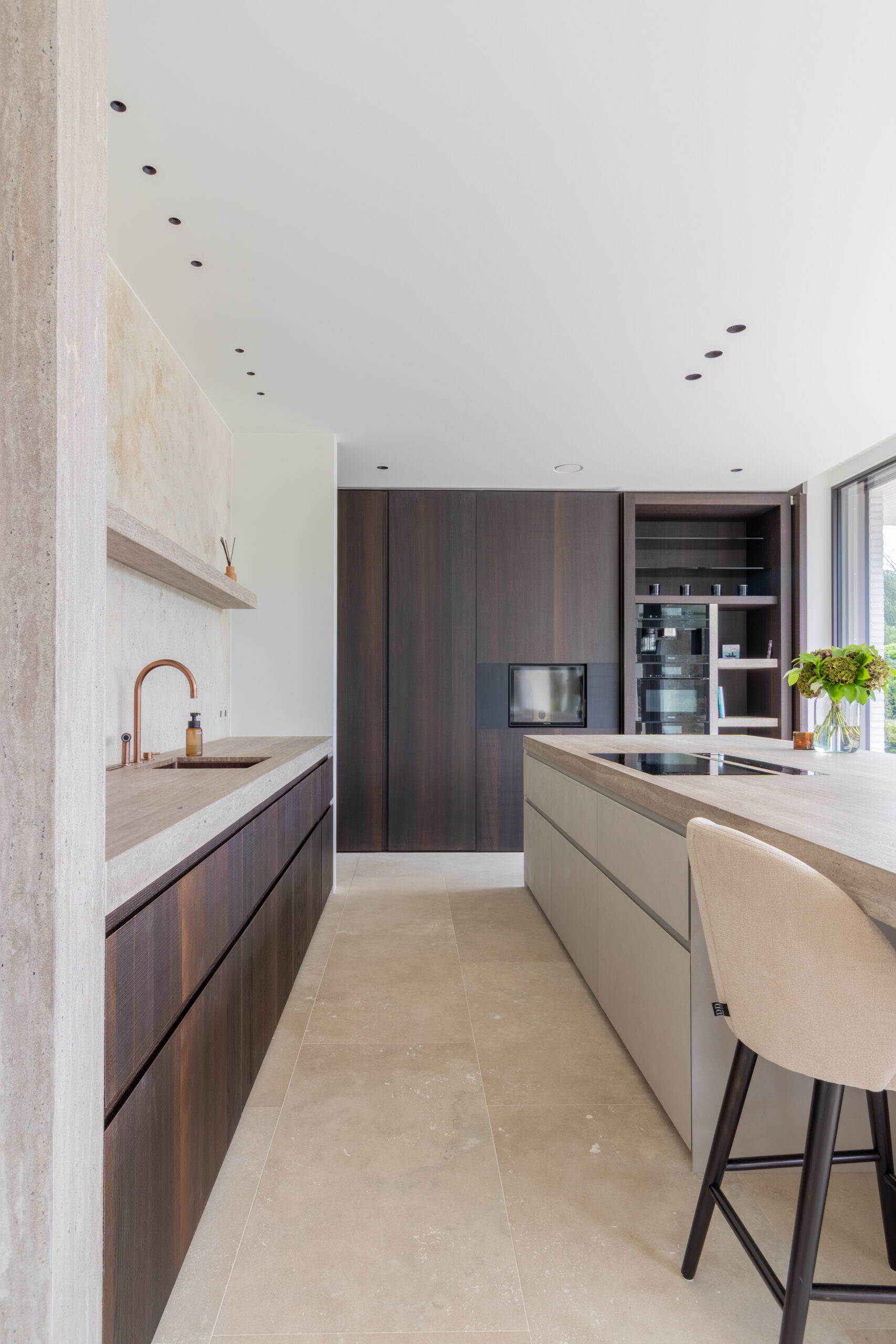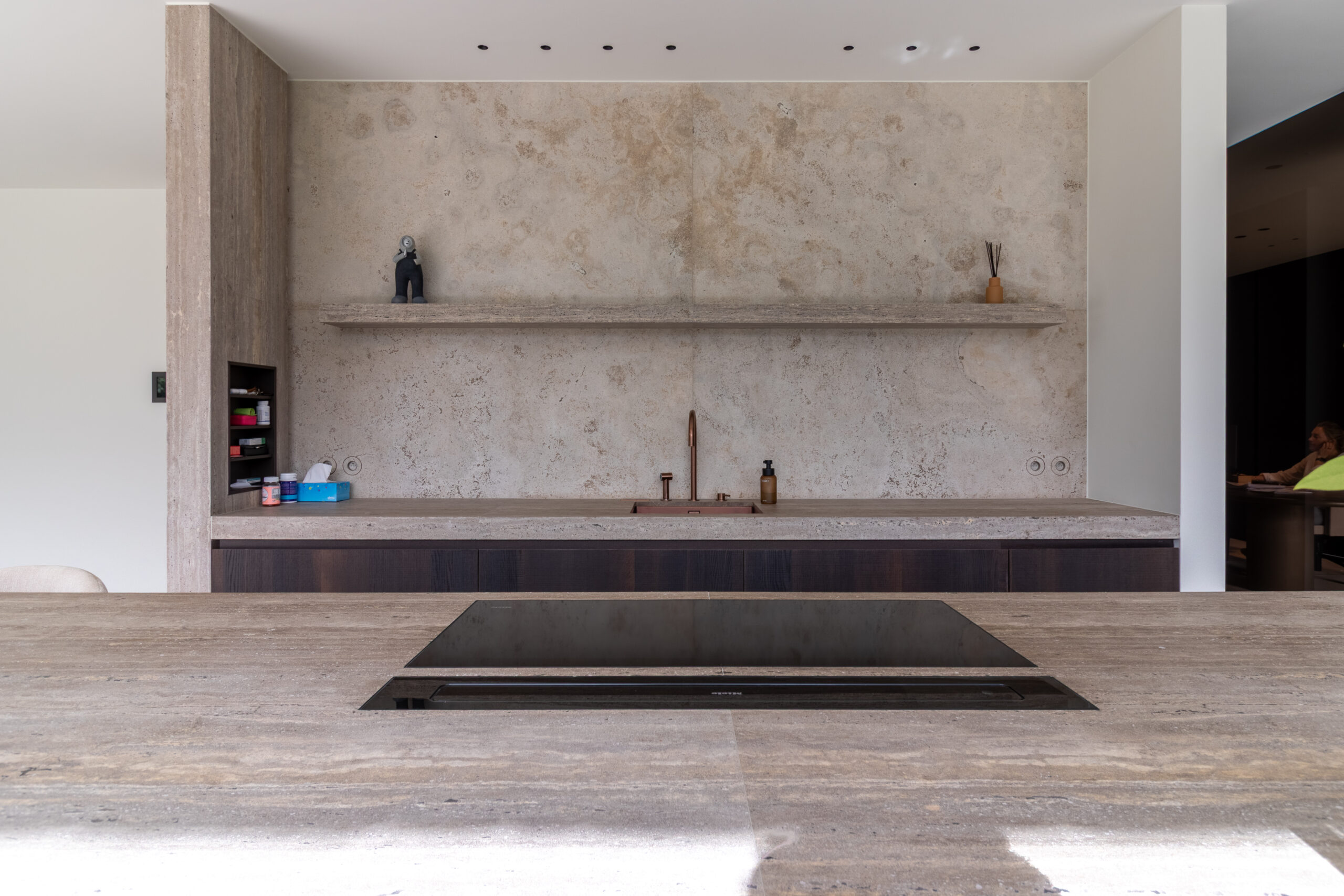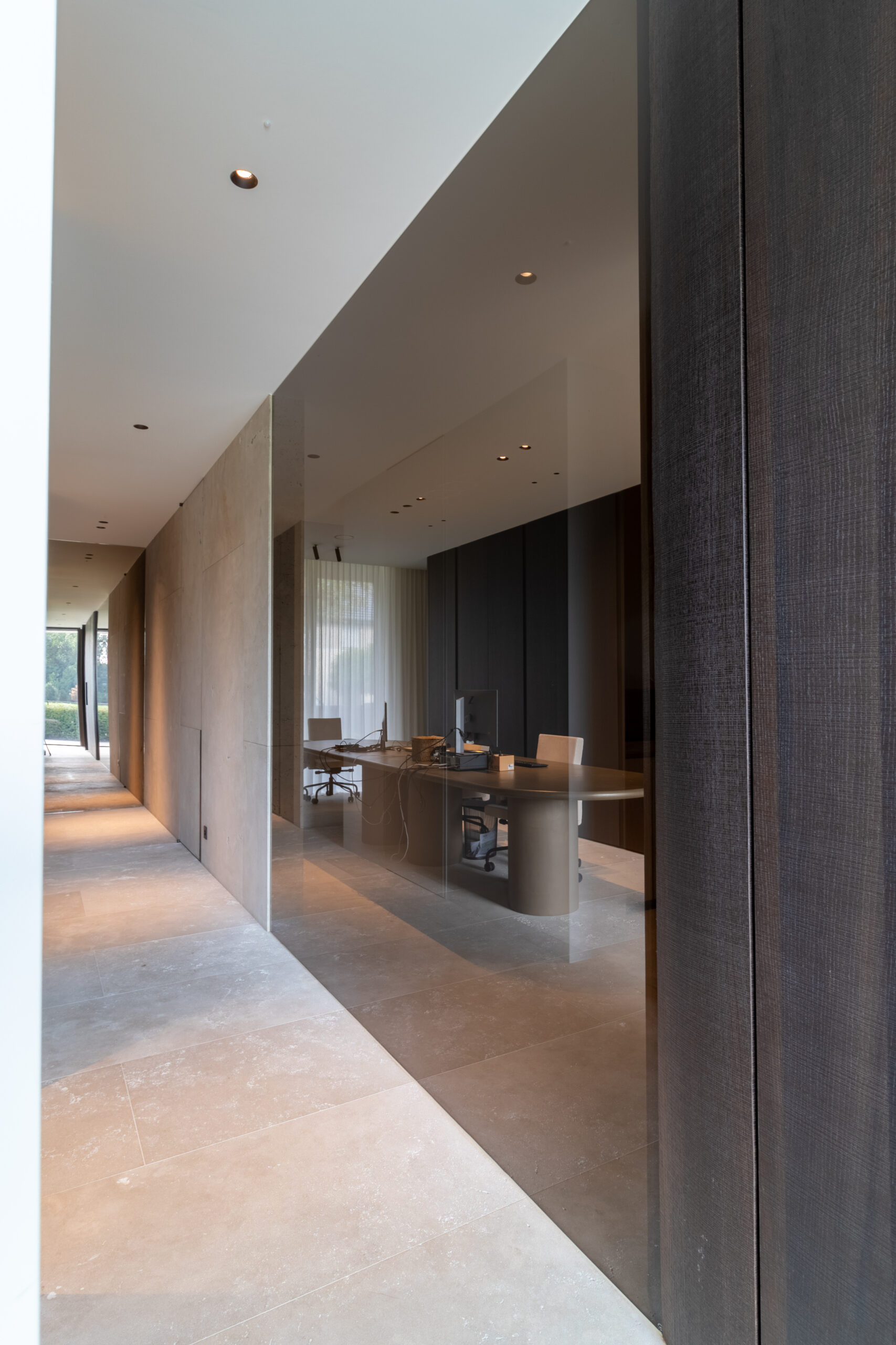Moderne Villa Hoogstraten is een moderne parel. Het voorgaande huis is met de grond gelijk gemaakt waarna dit moderne stuk architectuur is opgebouwd. Samen met een architect is hier een villa gebouwd waar je U tegen zegt. Het huis is modern en industrieel maar voelt tegelijk warm en huiselijk. Dat komt omdat er door het gehele huis alleen is gewerkt met natuurlijke kleuren en accenten en muren zijn afgewerkt met ronde vormen. Een mooi detail is het natuursteen wat overal door het huis terug komt, in de keuken, de hal, de slaapkamer en de badkamer. Buiten beschik je over 2 hectare grond, een nieuw aangelegde tuin met daarachter een groot stuk weiland omringd door bomen. Dat maakt het toch helemaal af.