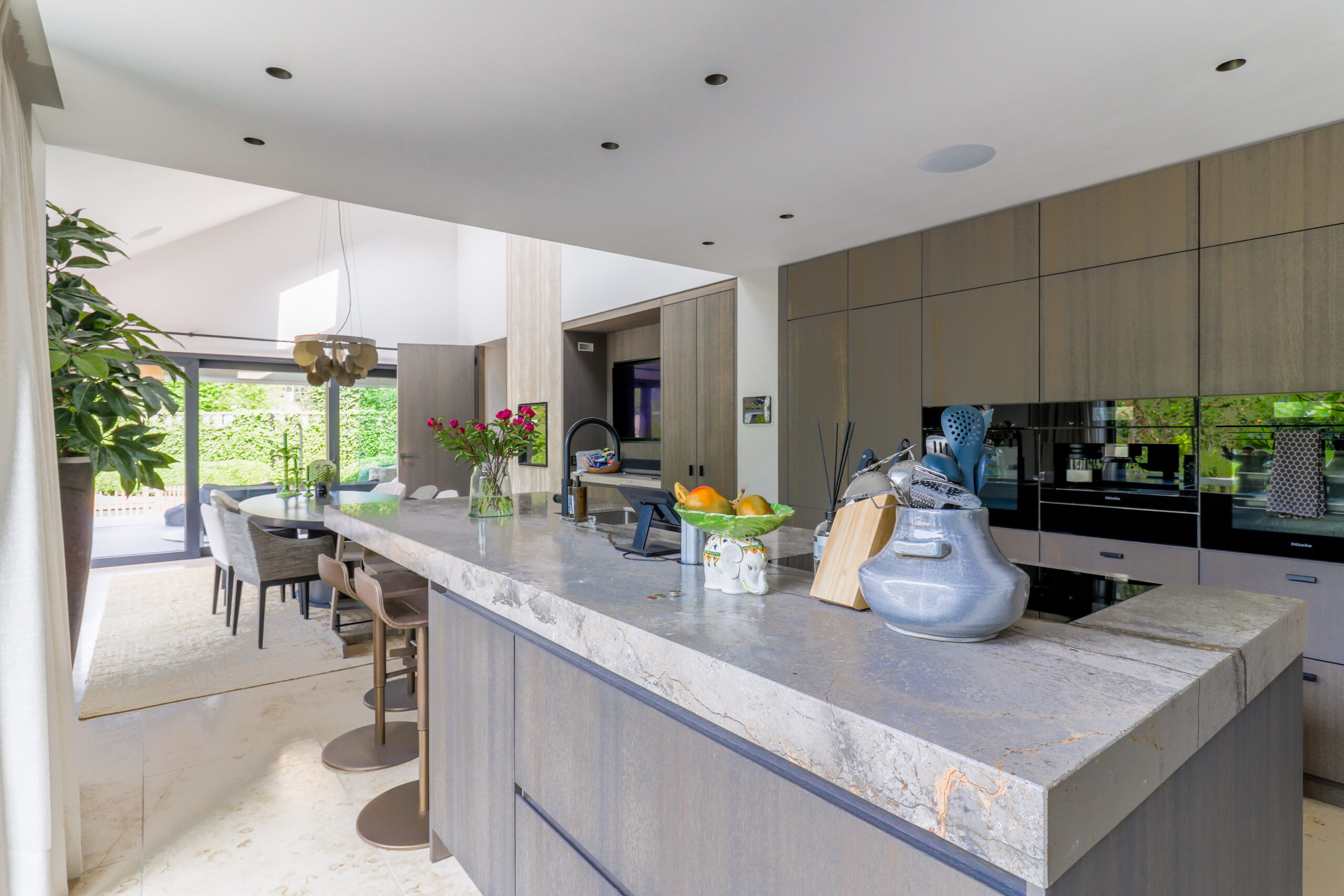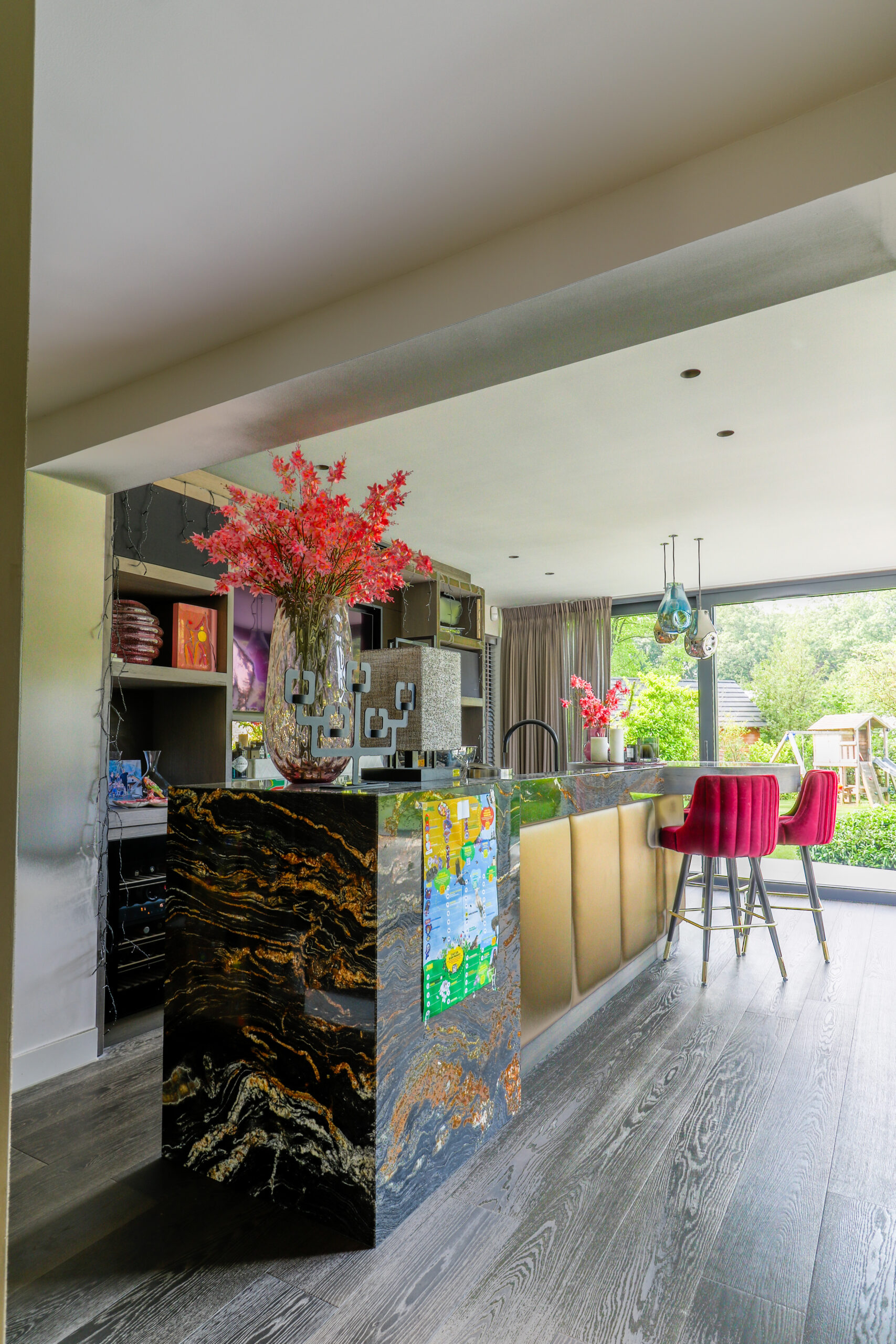 Een vrijstaande woning in een bosrijke omgeving is natuurlijk iets wat de meesten van ons wel zouden willen. Ontworpen in samenwerking met een architect is de woning, tuin en het interieur van top tot teen aangepakt. Binnen is het lekker licht en ruim én is er een privé barretje verwerkt tussen de keuken en woonkamer. Buiten heb je de beschikking over een enorme groene tuin, luxe zithoek en een zwembad. En dat alles grenst aan bossen en vennen in de natuur. Perfect toch?