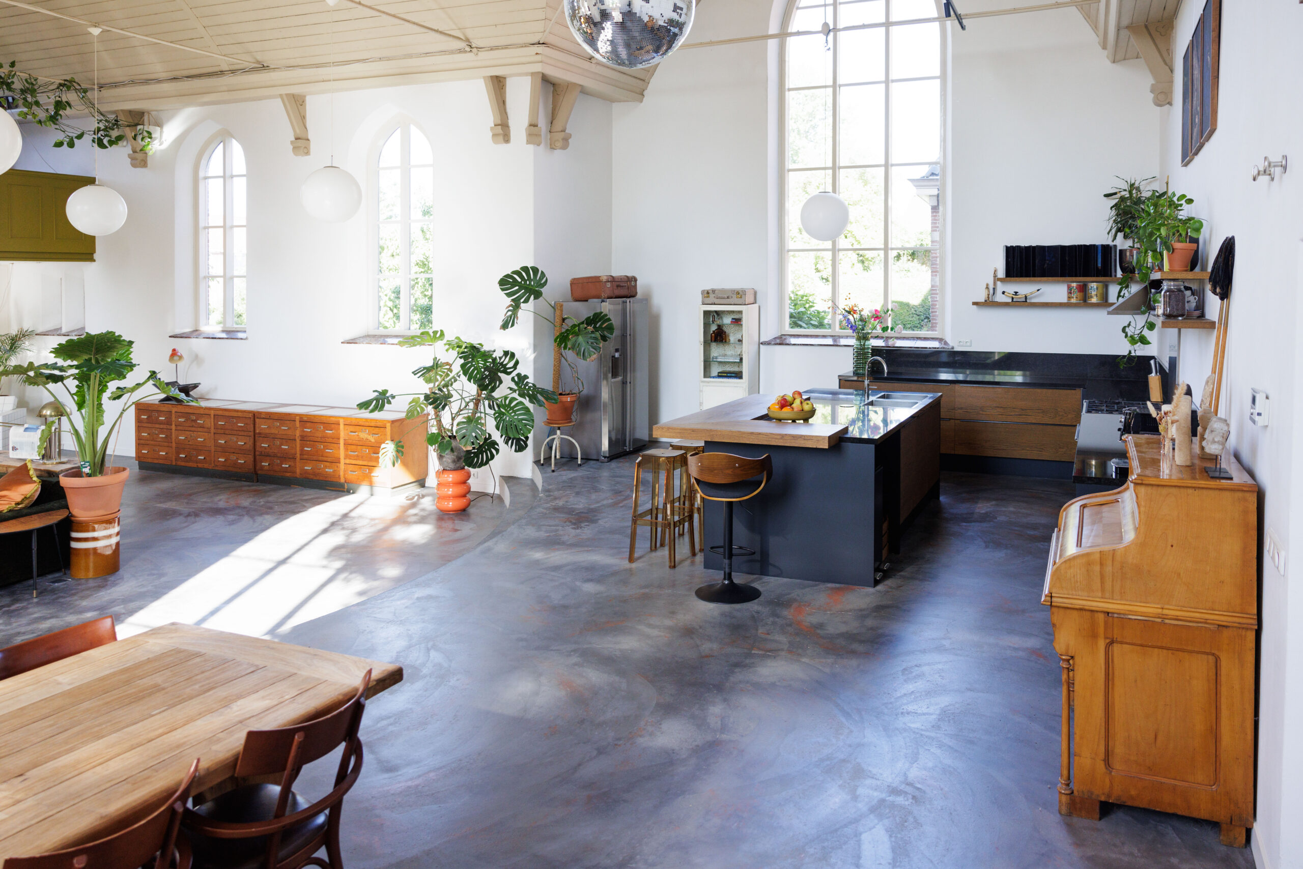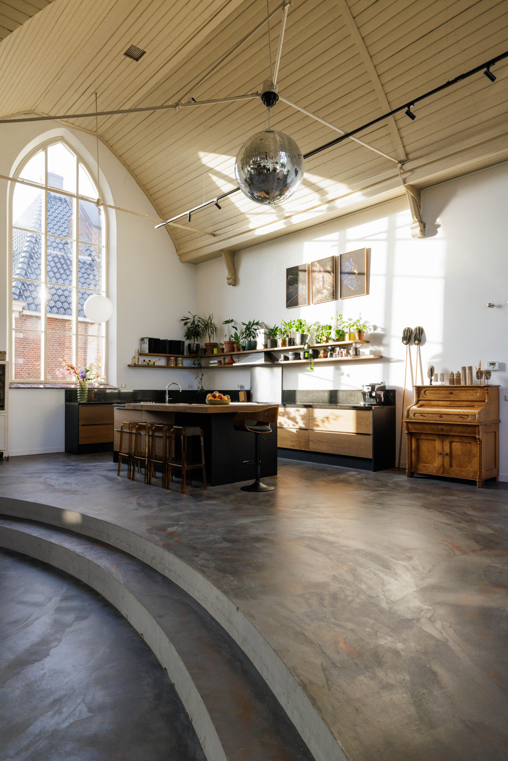 Deze Omgebouwde Kerk Friesland heeft iets magistraals. En niet alleen door de 7 meter hoge plafonds en 5 meter hoge raampartijen. Ook doordat het een authentieke kerk is (inclusief collectezakjes en orgelpijpen) met moderne faciliteiten. De keuken is daar een mooi voorbeeld van; aan het raam, onder de hoge plafonds van een kerk, maar op zichzelf modern en eigentijds. Een ideale locatie door zijn ruimte, hoogte en lichtinval.