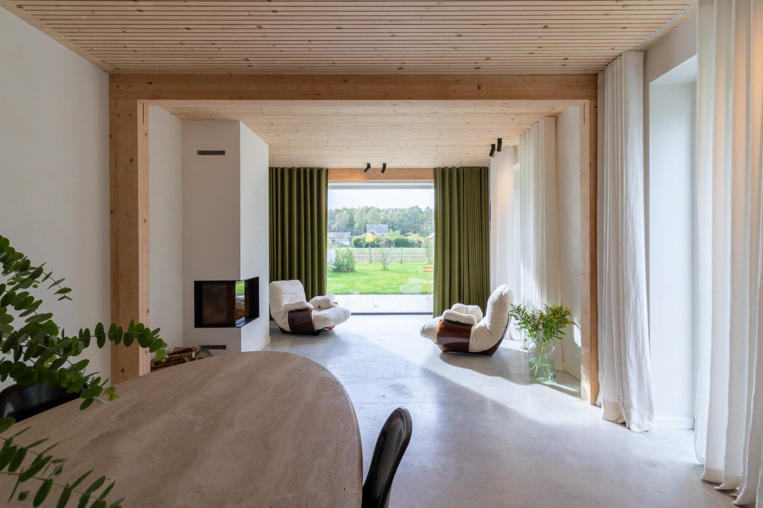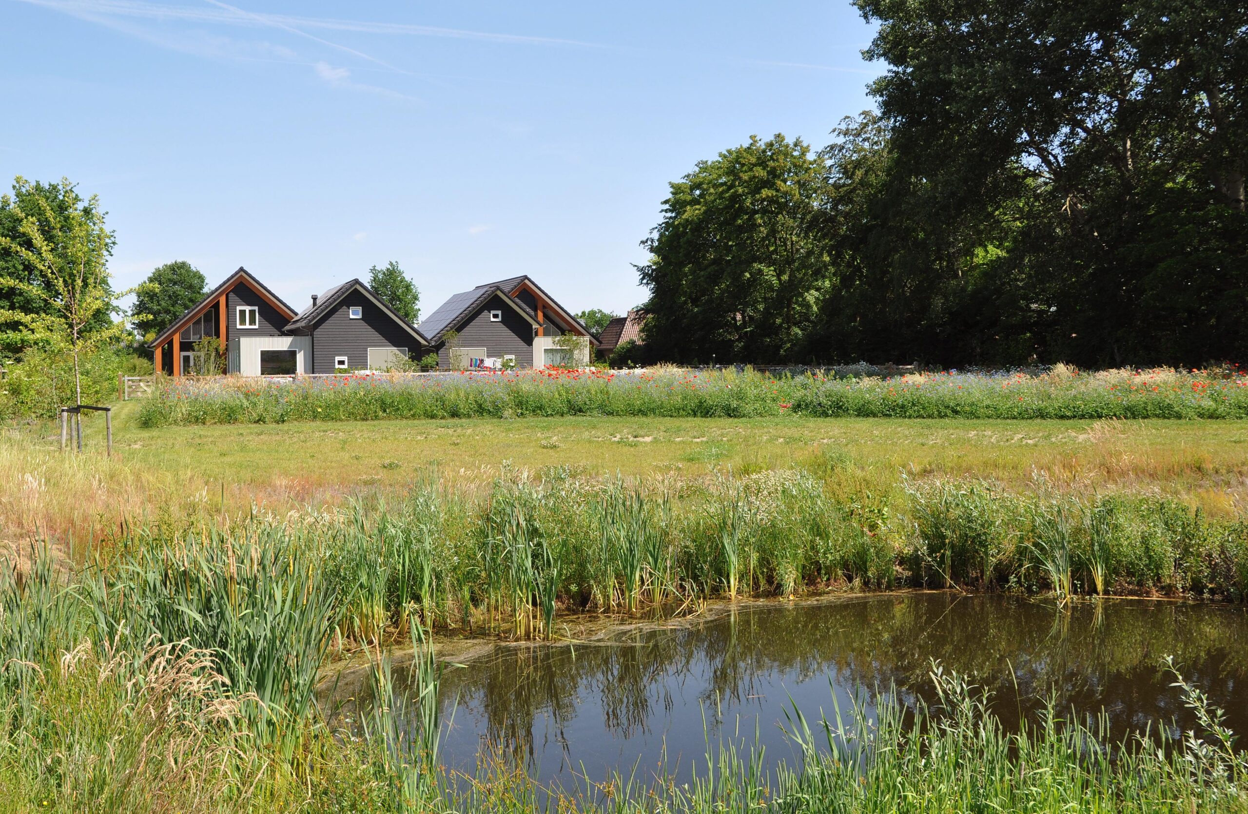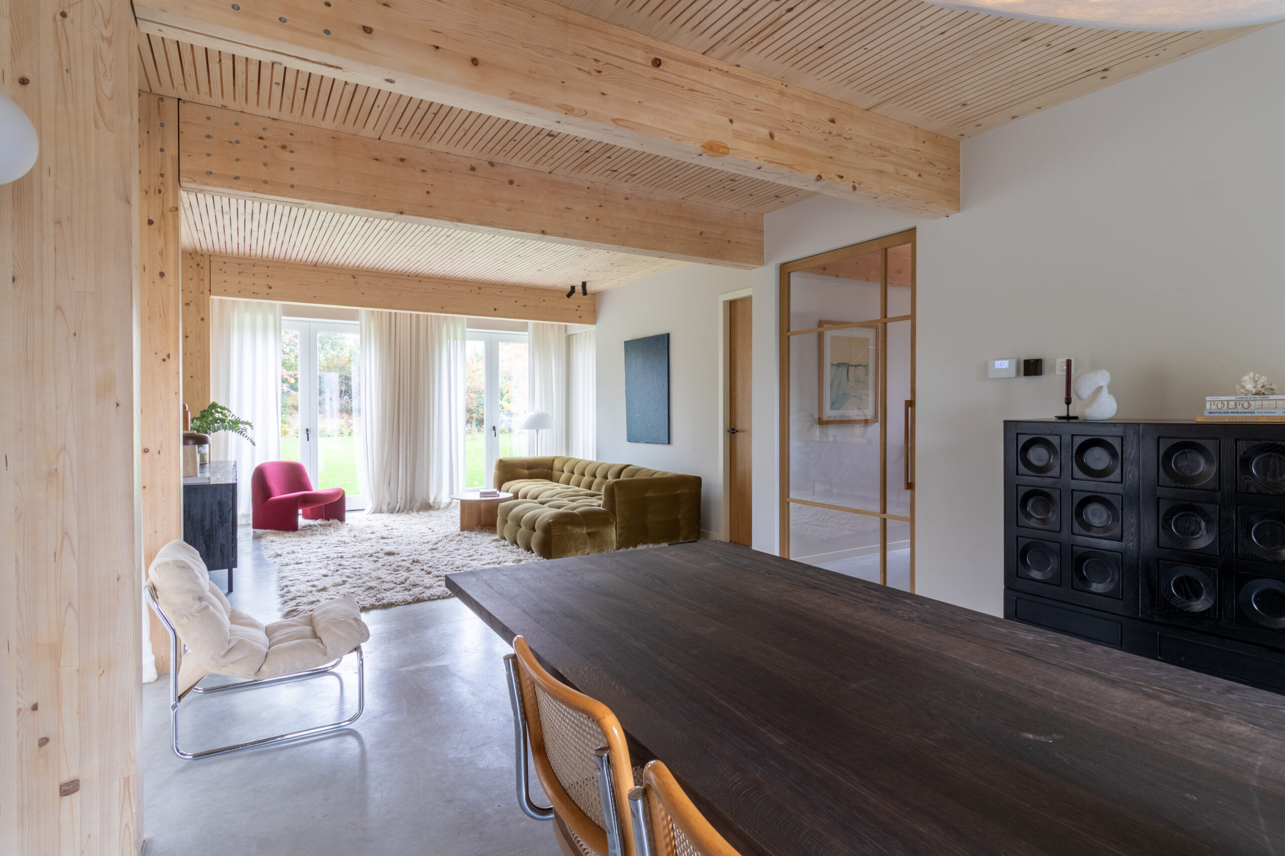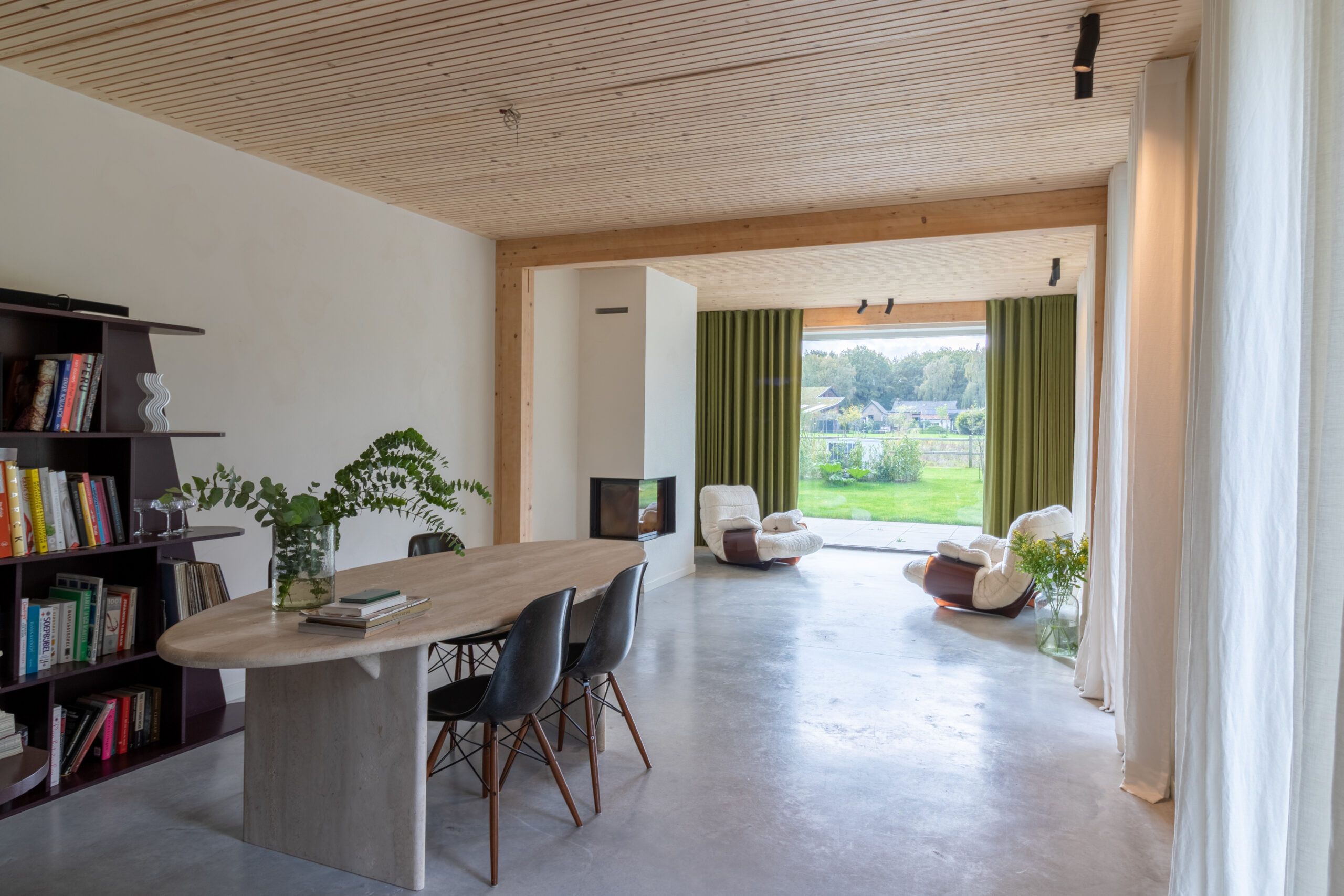 Wat een onwijs mooie toevoeging is Sfeervolle Woning Schaijk aan ons bestand. Wanneer je de moderne buitenkant ziet van deze woning verwacht je niet helemaal wat voor stijl je binnen aantreft (en de grootte!). De gehele woning is gebouwd met hout als basis en dus volledig ecologisch. Wat zo goed samengaat is deze houten constructie in combinatie met de betonnen gietvloer en de vintage designmeubels, die zorgen voor stijl en kleur. In de lengte aan de achterkant van de (prachtige) keuken is er nog een grote ruimte die uitkijkt over de enorme biologische tuin. Het mooie aan die tuin is dat deze gedeeld wordt met 5 andere woningen die eromheen liggen en door de bewoners wordt onderhouden. Een vijver, bloementuin, moestuin.. alles is hier aanwezig.