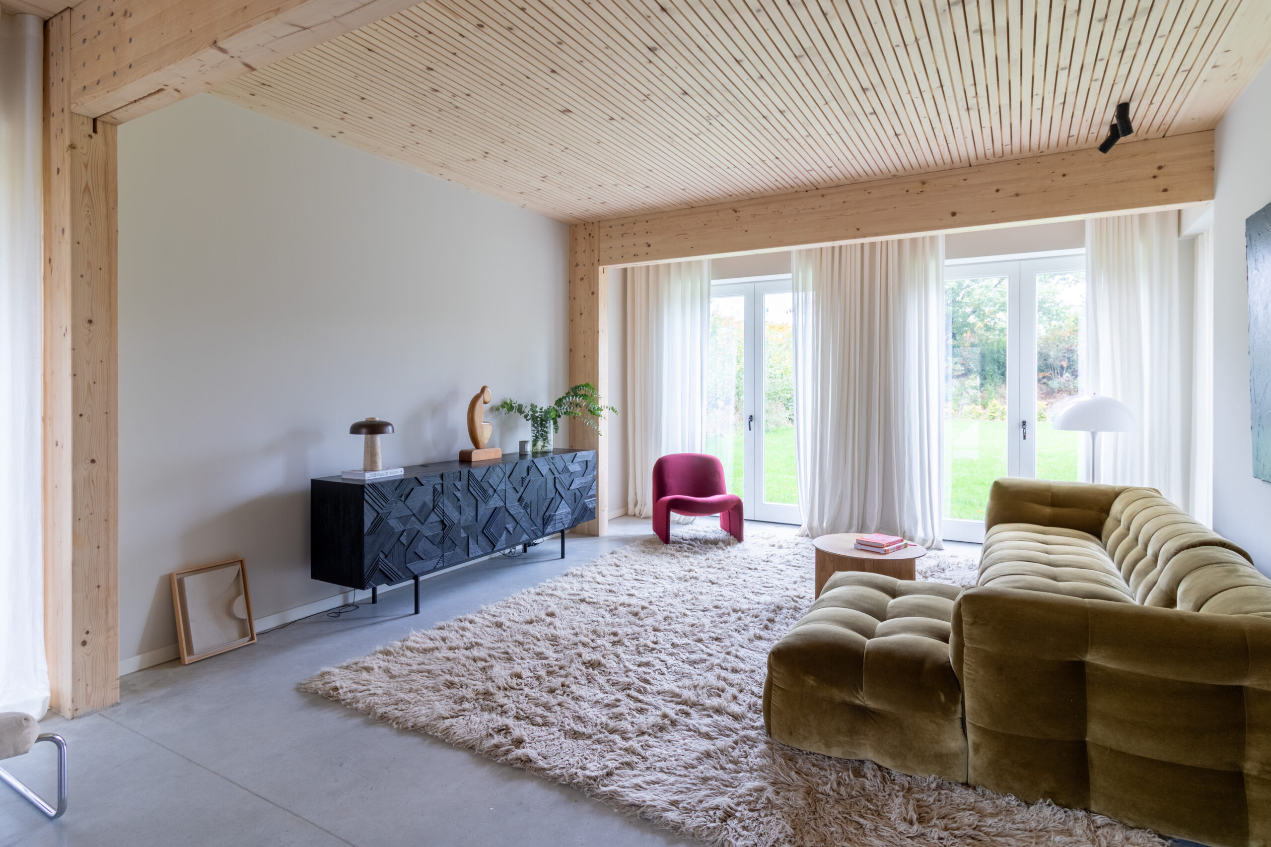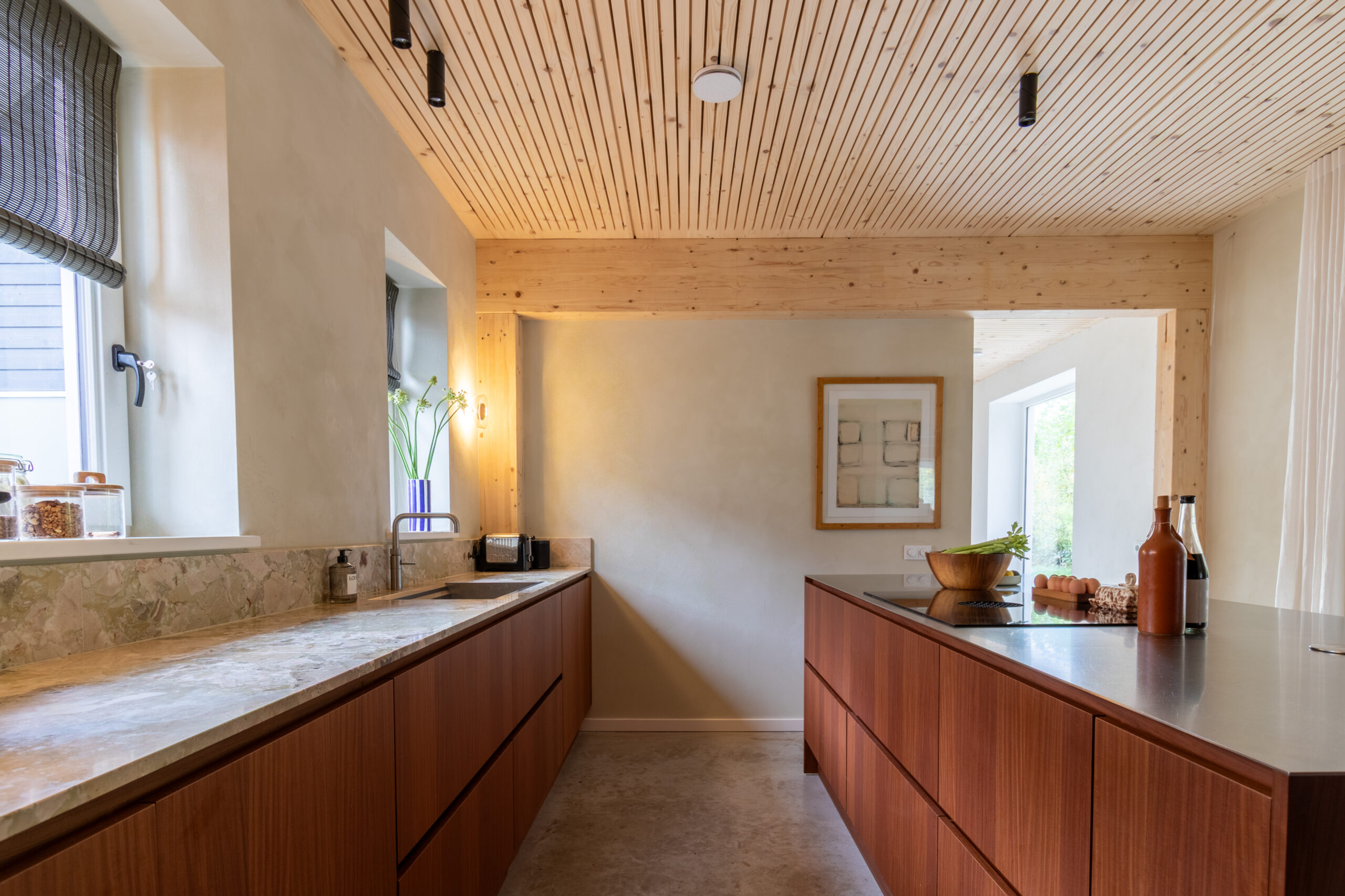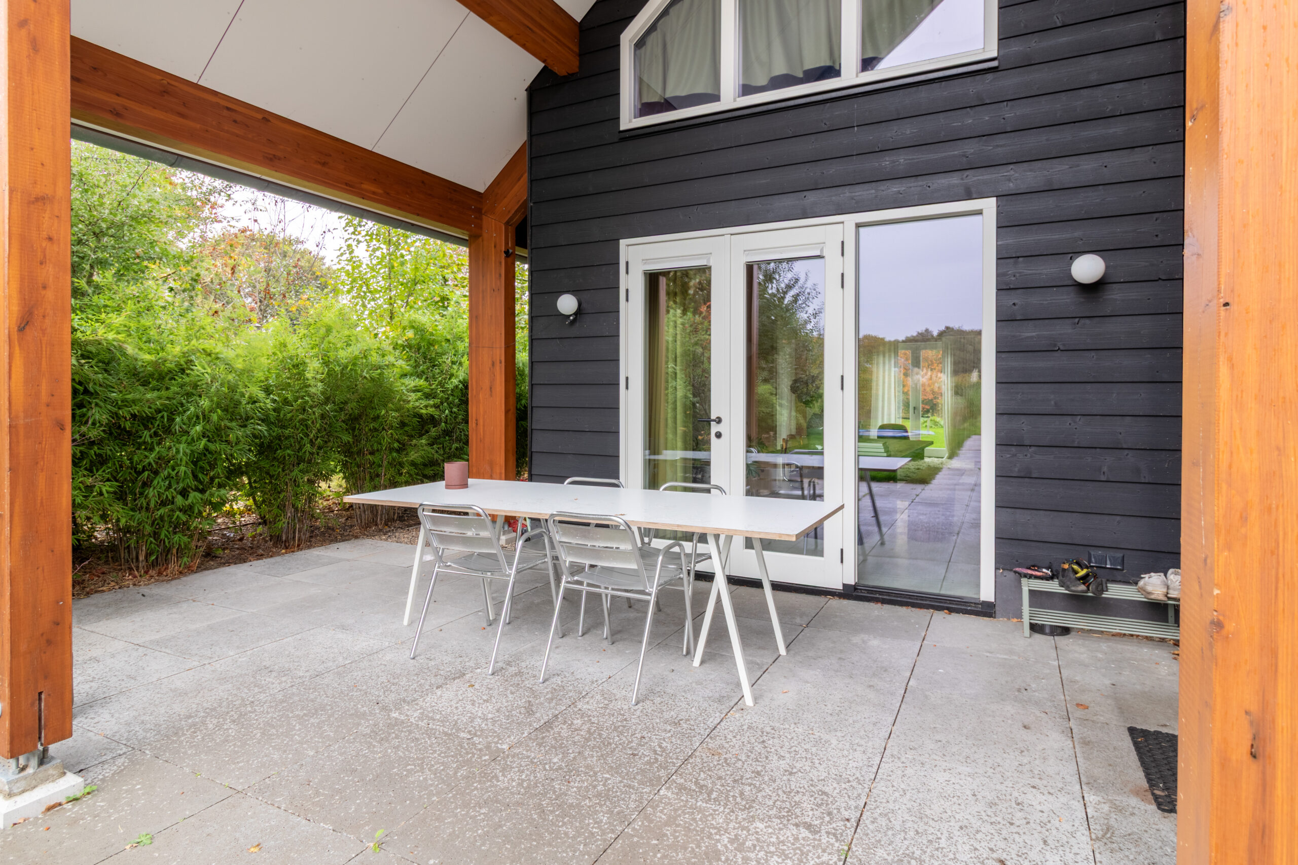 Wat een onwijs mooie toevoeging is Sfeervolle Woning Schaijk aan ons bestand. Wanneer je de moderne buitenkant ziet van deze woning verwacht je niet helemaal wat voor stijl je binnen aantreft (en de grootte!). De gehele woning is gebouwd met hout als basis en dus volledig ecologisch. Wat zo goed samengaat is deze houten constructie in combinatie met de betonnen gietvloer en de vintage designmeubels, die zorgen voor stijl en kleur. In de lengte aan de achterkant van de (prachtige) keuken is er nog een grote ruimte die uitkijkt over de enorme biologische tuin. Het mooie aan die tuin is dat deze gedeeld wordt met 5 andere woningen die eromheen liggen en door de bewoners wordt onderhouden. Een vijver, bloementuin, moestuin.. alles is hier aanwezig.