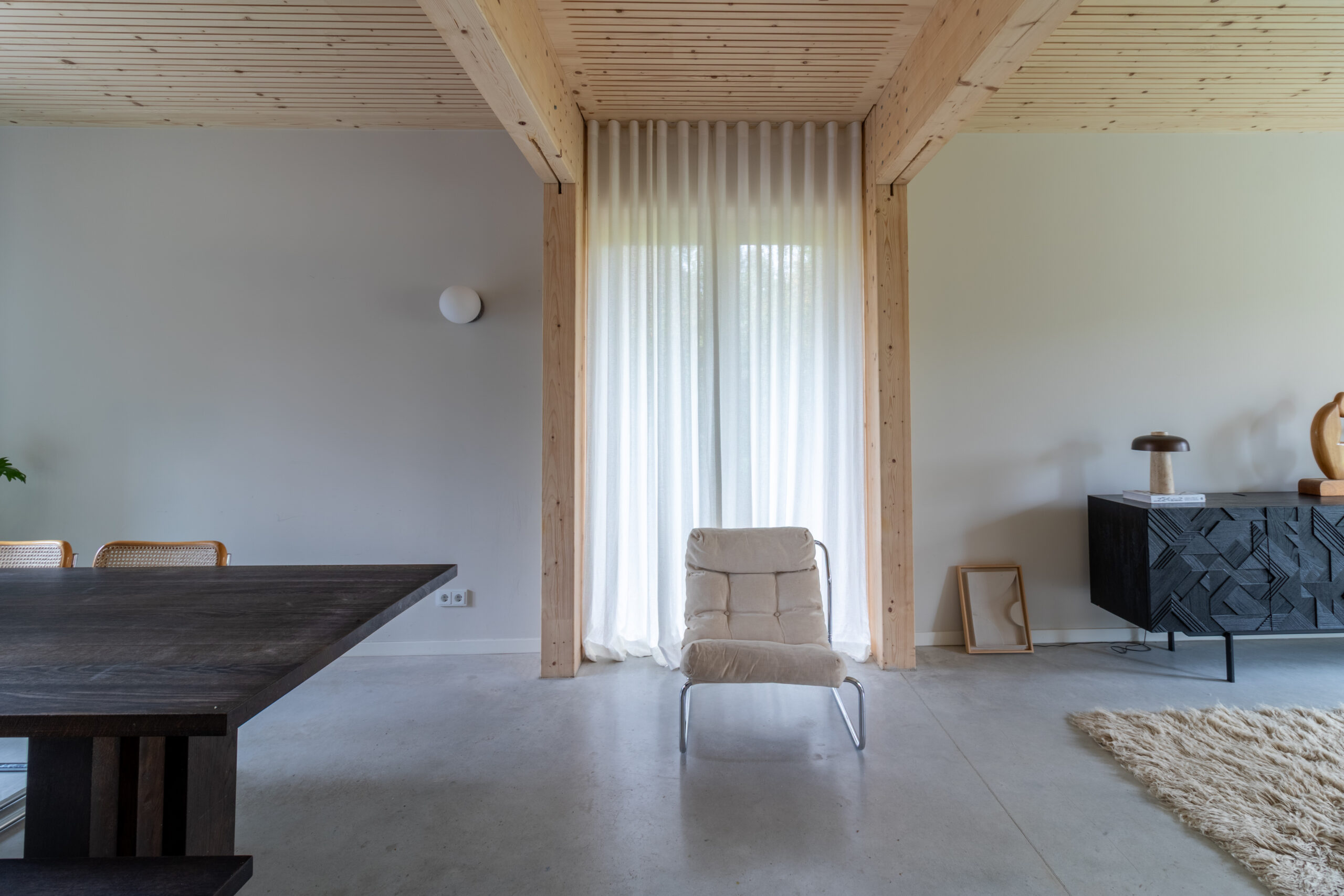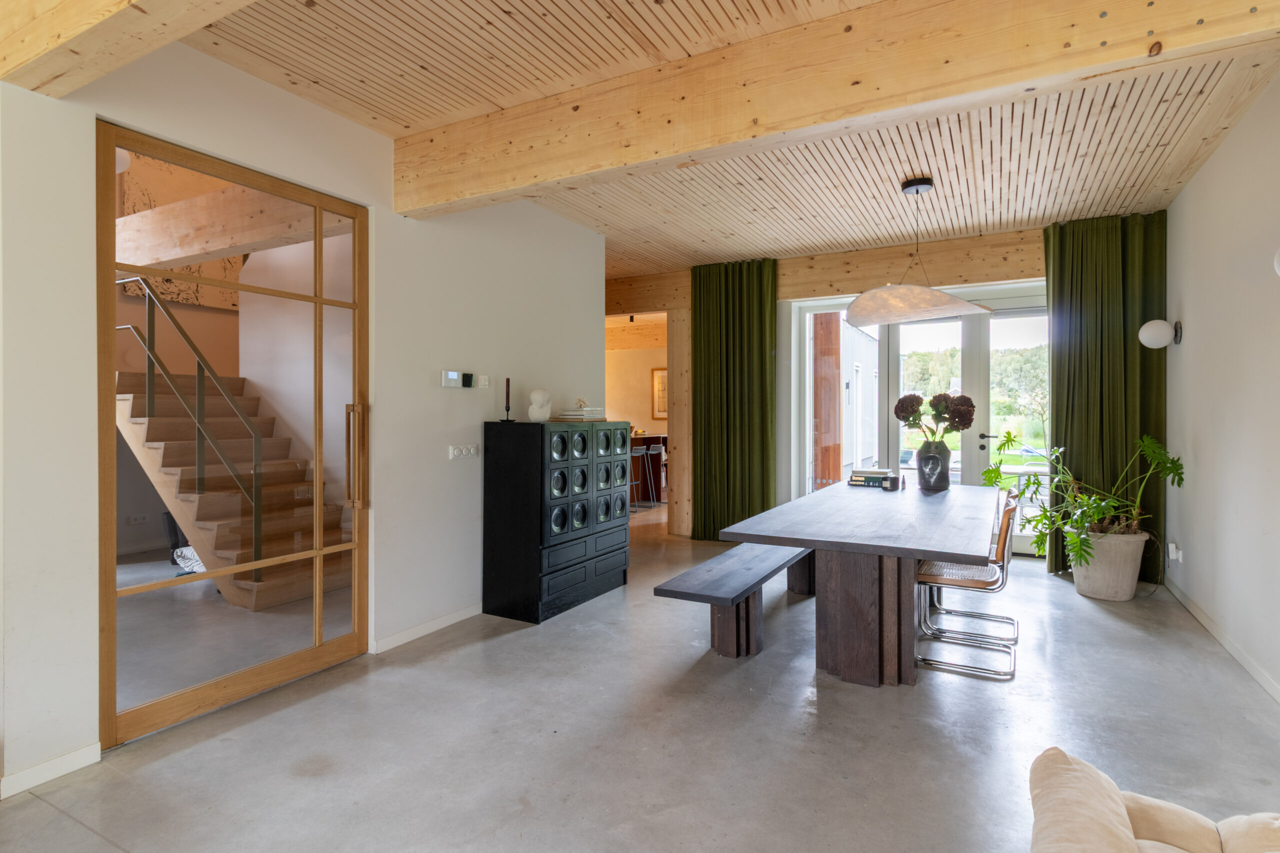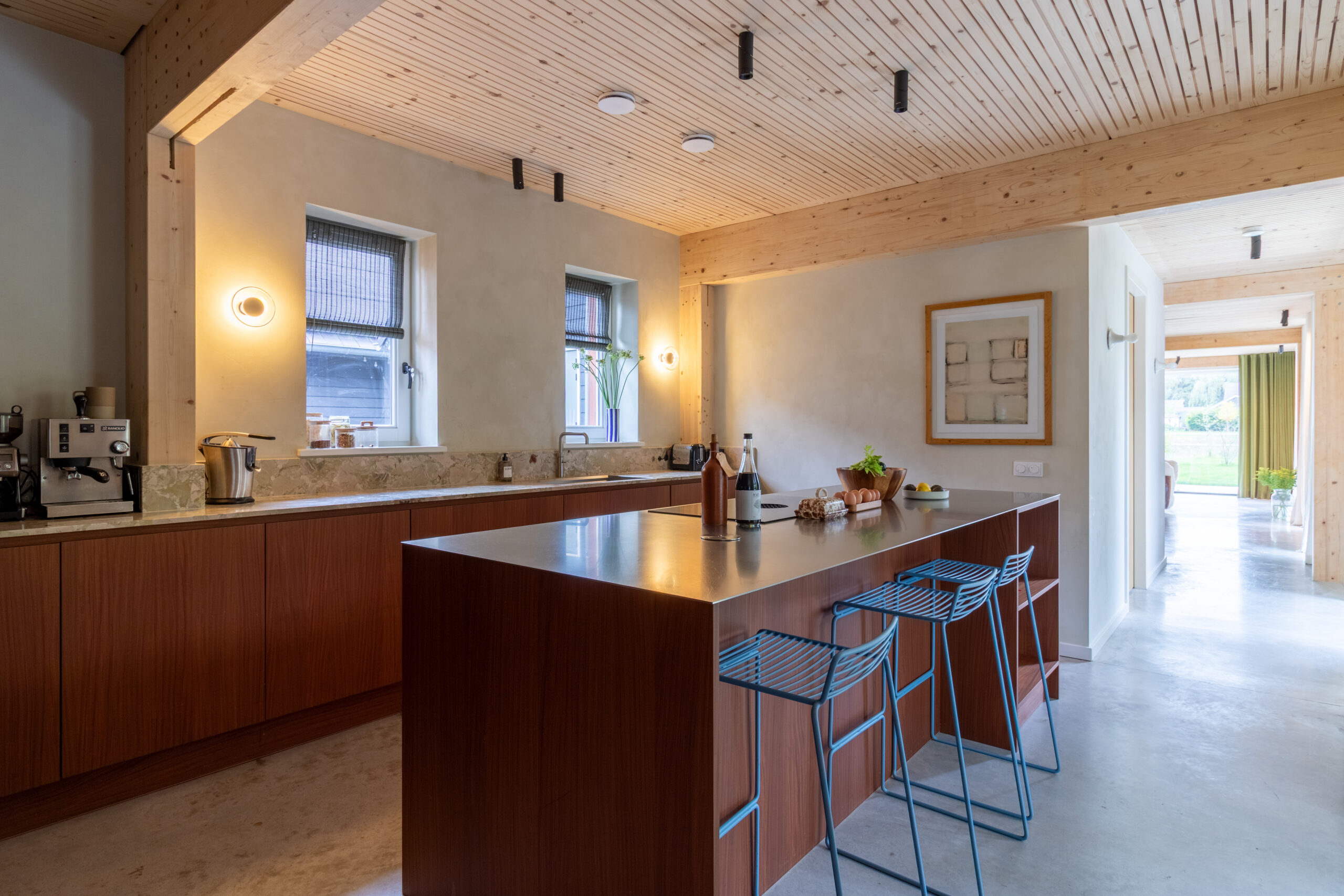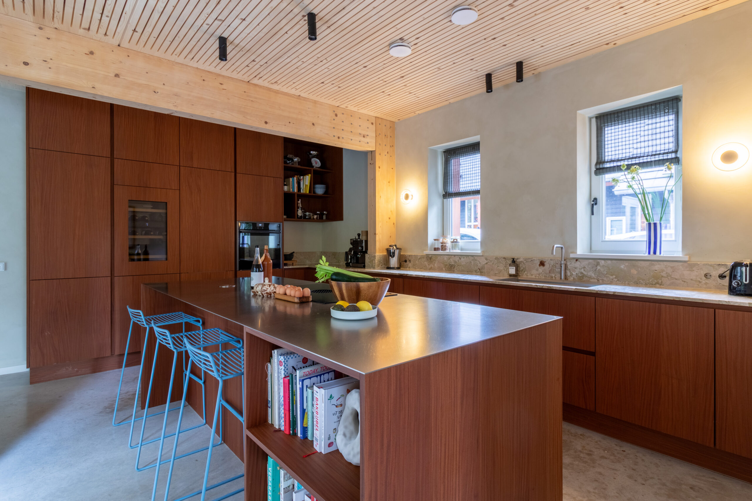 Wat een onwijs mooie toevoeging is Sfeervolle Woning Schaijk aan ons bestand. Wanneer je de moderne buitenkant ziet van deze woning verwacht je niet helemaal wat voor stijl je binnen aantreft (en de grootte!). De gehele woning is gebouwd met hout als basis en dus volledig ecologisch. Wat zo goed samengaat is deze houten constructie in combinatie met de betonnen gietvloer en de vintage designmeubels, die zorgen voor stijl en kleur. In de lengte aan de achterkant van de (prachtige) keuken is er nog een grote ruimte die uitkijkt over de enorme biologische tuin. Het mooie aan die tuin is dat deze gedeeld wordt met 5 andere woningen die eromheen liggen en door de bewoners wordt onderhouden. Een vijver, bloementuin, moestuin.. alles is hier aanwezig.