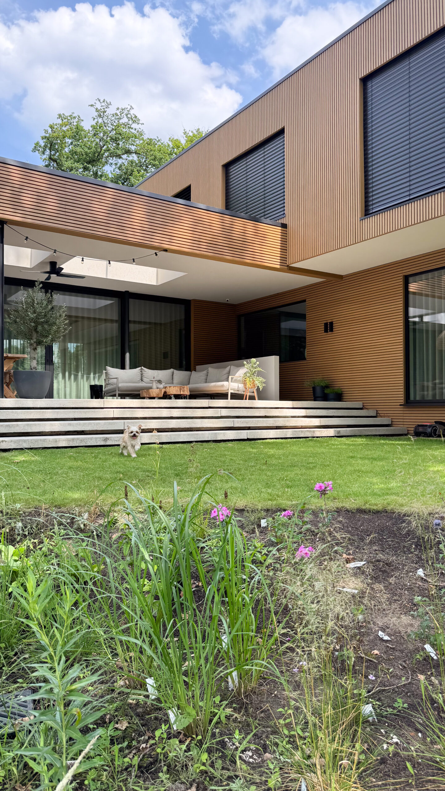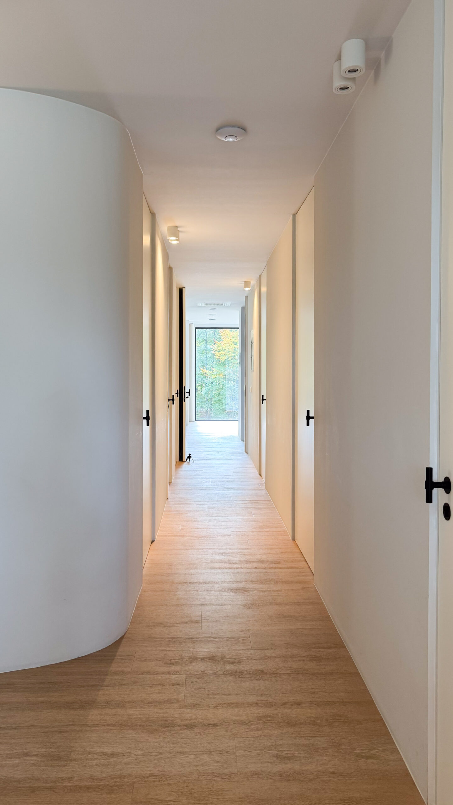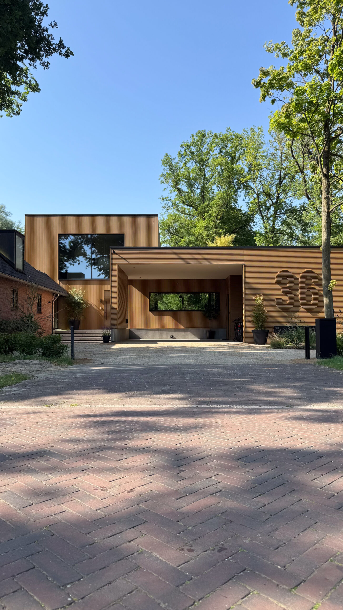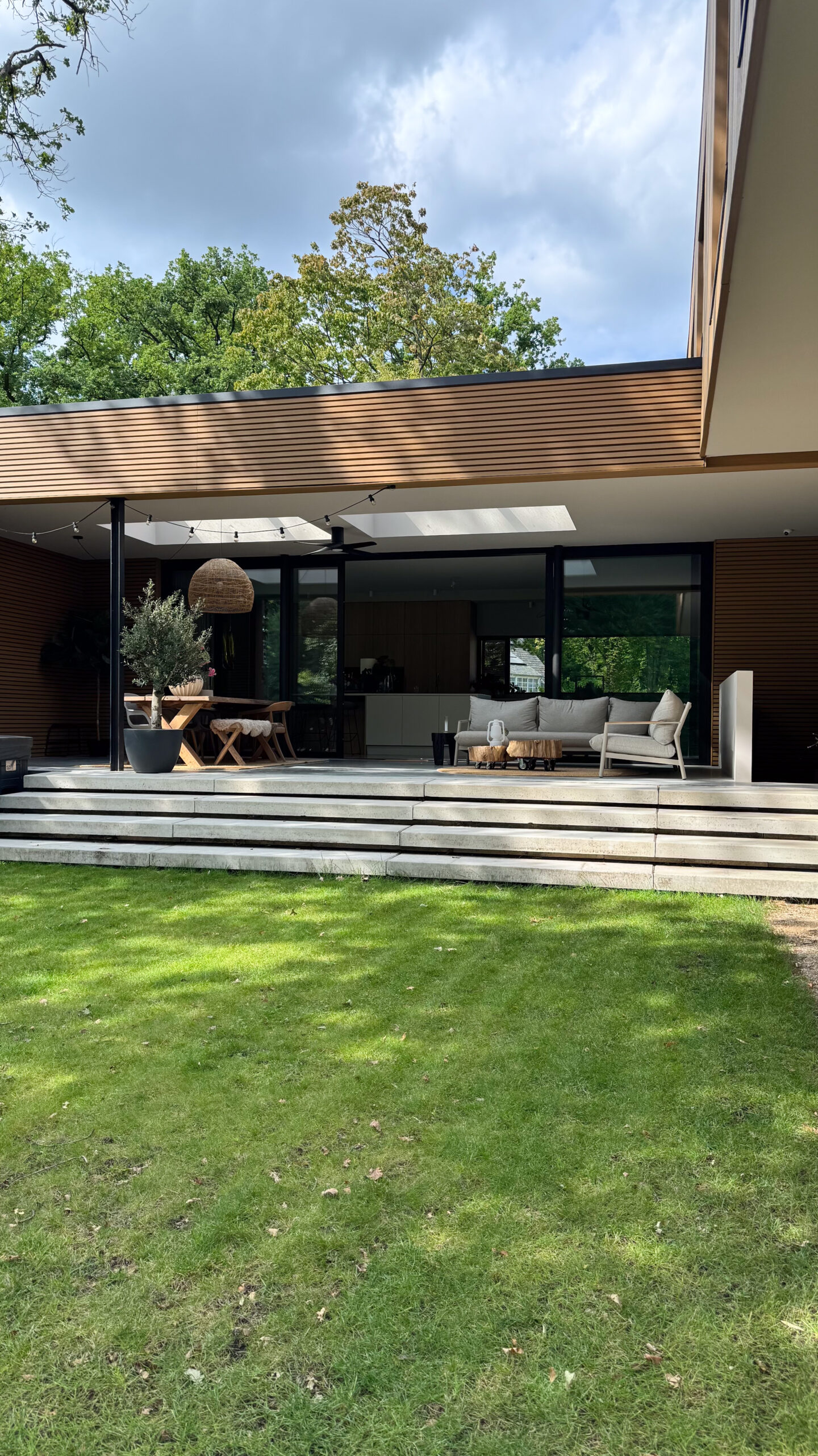 Van deze Unieke Villa Enschede vind je er geen twee van (vandaar de passende titel). Alles is door de bewoners bedacht met een architect en zij hebben er letterlijk bloed, zweet en tranen voor gegeven omdat ze veel zelf gebouwd hebben. En dan hebben we het niet over een kastenwand, maar over betonnen trappen, ronde wanden en de gevelbekleding op zes meter hoogte. De moderne afwerking van de locatie zelf wordt versterkt door de voorliefde van vintage design. Door de voorliefde van de eigenaren zoeken ze zelf de pareltjes op en voegen ze deze toe binnenshuis. Buitenshuis komt het architectonische prachtig tot zijn recht en is het één met de natuur. Een prachtig aanzicht.